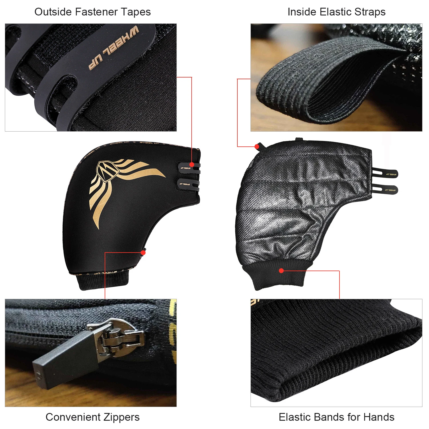 С эластичными лентами для рук, Защитите руки теплыми, сухими и уютными в дождливые, снежные и ветреные дни.