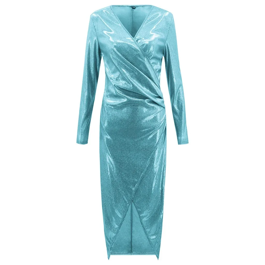 Мода женщин V шеи Твердые пляжные длинные платья с длинным рукавом Вечерние платья