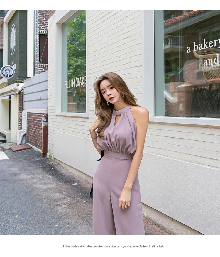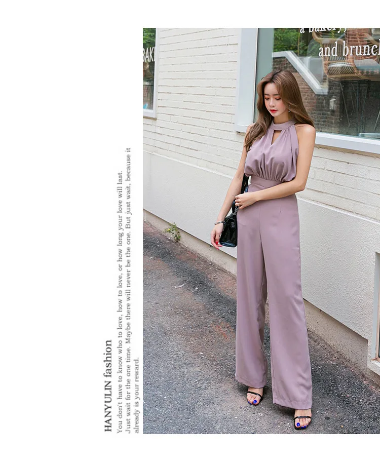 Офисный женский Облегающий комбинезон без рукавов, элегантный деловой комбинезон с широкими штанинами, повседневный женский комбинезон 2020 AE964