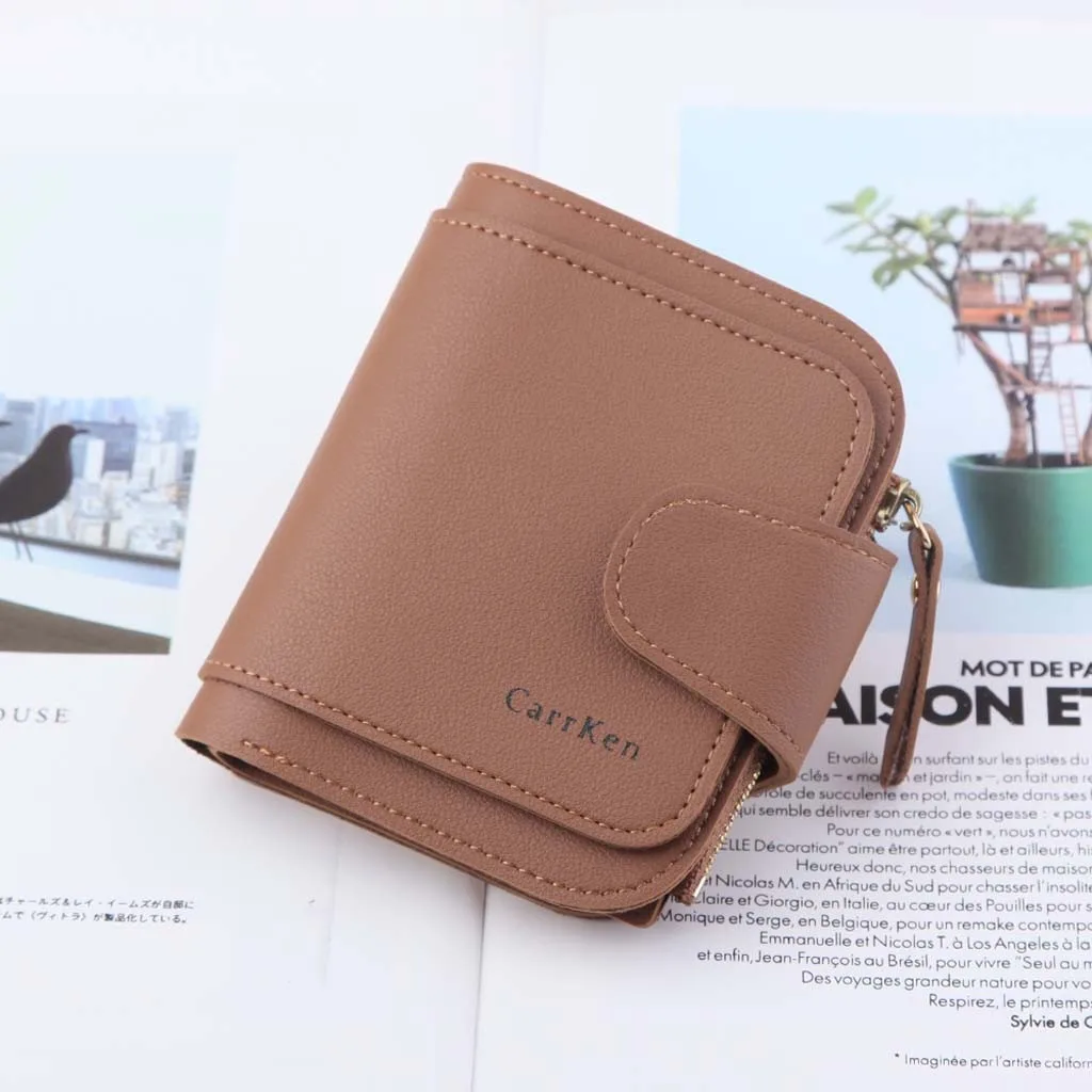 Женский новый короткий кошелек, Многофункциональный маленький кошелек на молнии, сумка для карт в три сложения