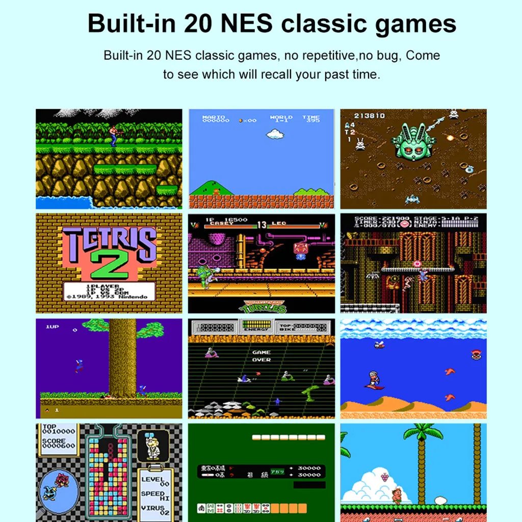 Компактный мини-дизайн этого продукта с использованием экологически чистых материалов, матового процесса, делает продукт более красивым. Поддержка подключения к телевизору, увеличение масштаба экрана игры, чтобы каждый мог поделиться интересами игры. Встроенные 20 классических игр, без дубликатов, без ошибок, позволяют вам наслаждаться счастливым отдыхом. Используйте сухой источник питания батареи, Примечание: Этот продукт не содержит сухих батарей.Параметры продукта