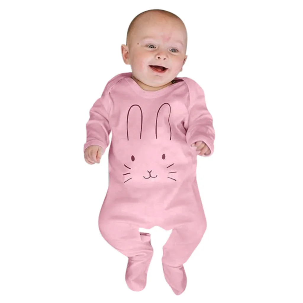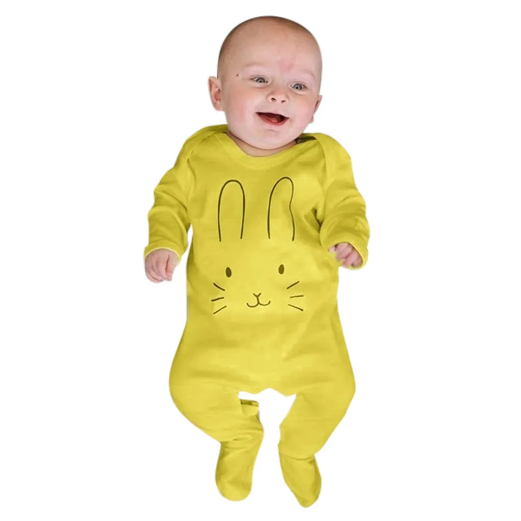 Комбинезон с длинными рукавами для новорожденных мальчиков и девочек, комбинезон с мультяшным принтом кролика