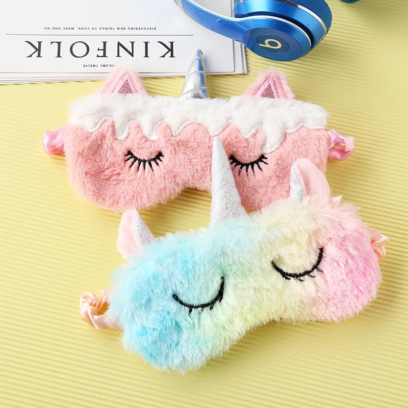 Рождественская плюшевая маска для сна в виде единорога, детский чехол для глаз, мультяшная 3D шелковая маска для сна, дорожная маска для глаз, повязка на глаза для отдыха