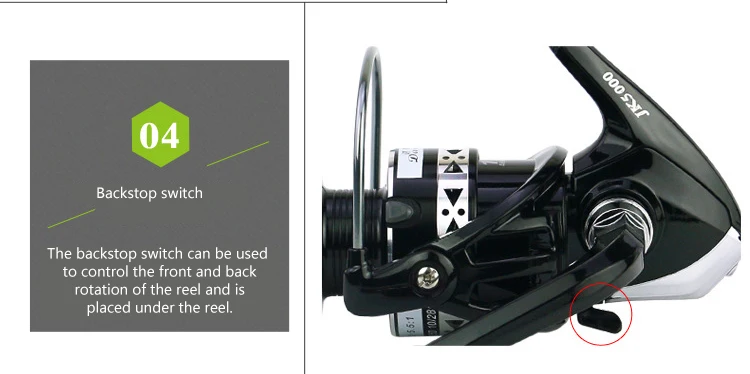 Задний упор Переключатель может использоваться для того чтобы контролировать переднюю и заднюю часть вращения Рыболовная катушка, который расположен под Рыболовная катушка.