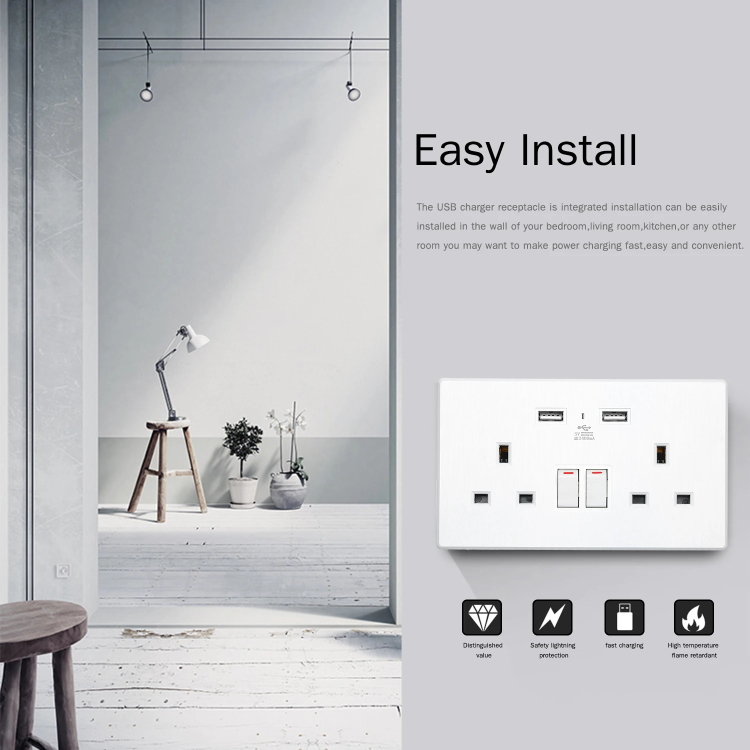 Простая установка: зарядное устройство USB интегрированная установка может быть легко установлена в стене вашей спальни, гостиной, кухни или любой другой комнаты, вы можете сделать зарядку питания быстро, легко и удобно.