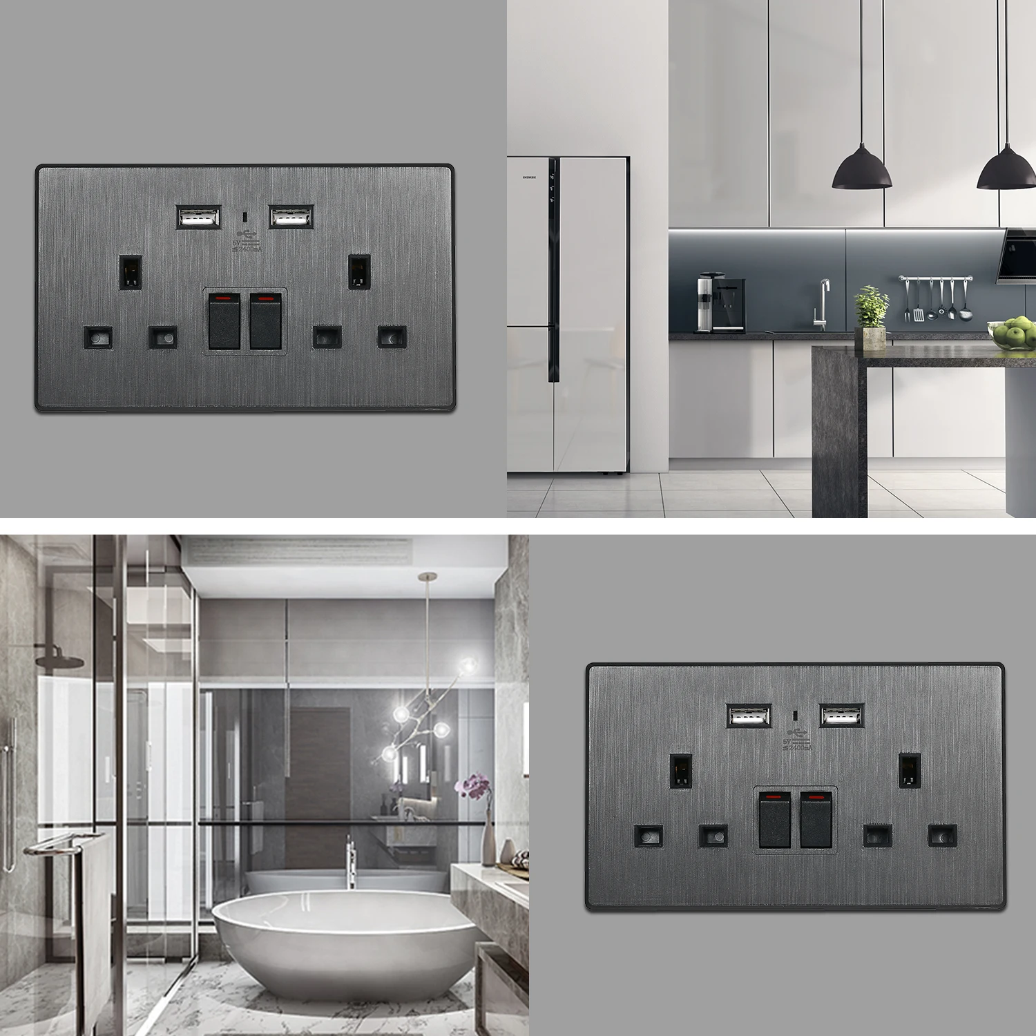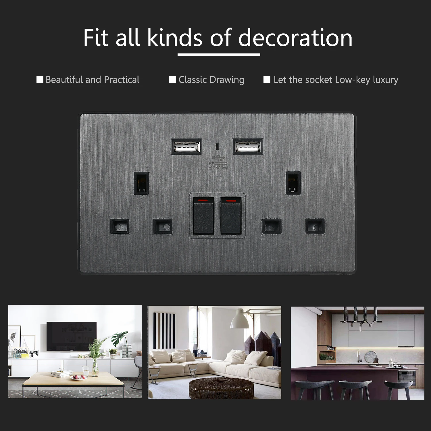 Компактный дизайн: квадратная настенная розетка небольшого размера имеет 2 разъема, 2 usb-порта и 2 кнопки включения/выключения, обеспечивает 4 отдельных электрических розетки для питания или зарядки ваших гаджетов.