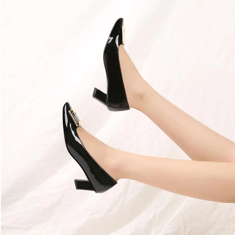 (33-41), женские туфли-лодочки 2020 с квадратной пряжкой весенние туфли-лодочки на высоком каблуке Лакированная кожа Дамская обувь Классическая пикантная Свадебная обувь на высоком каблуке для женщин Pf-018