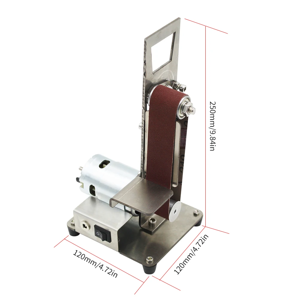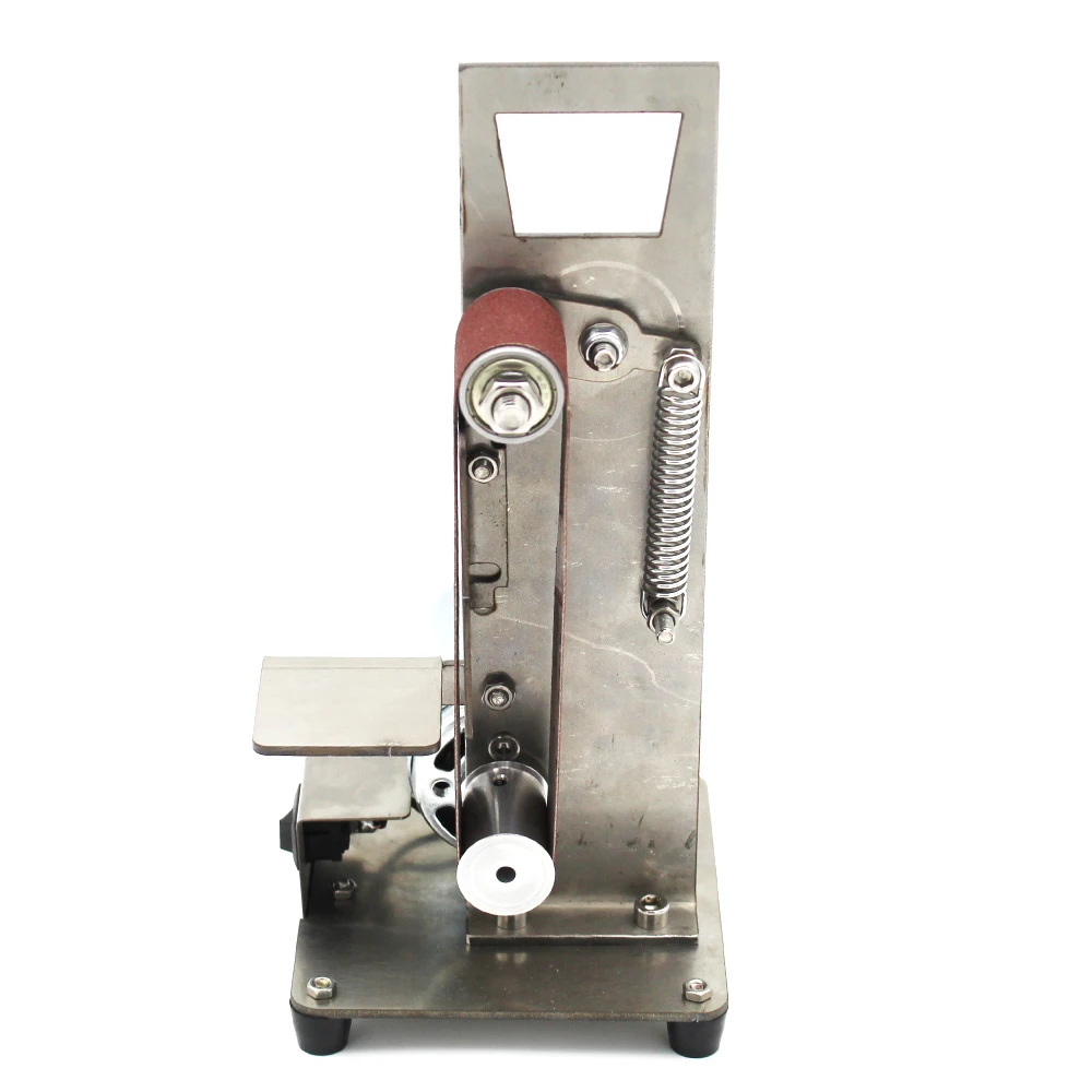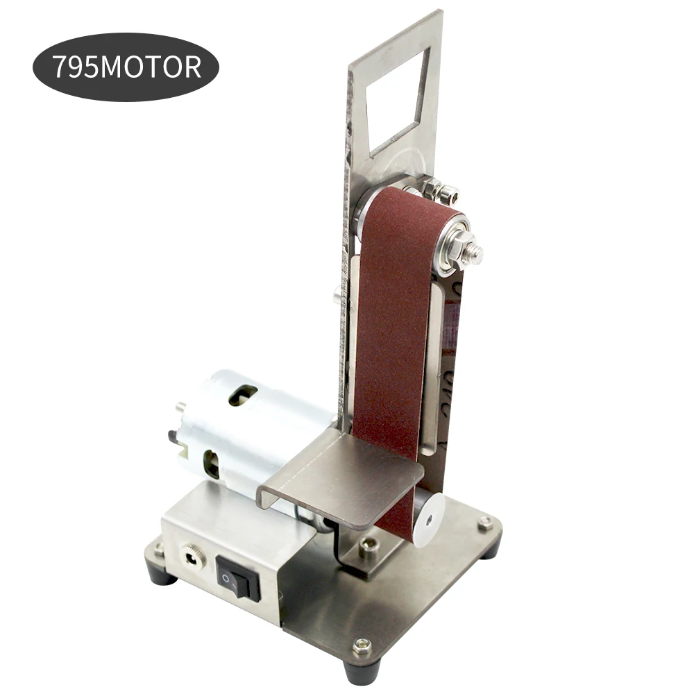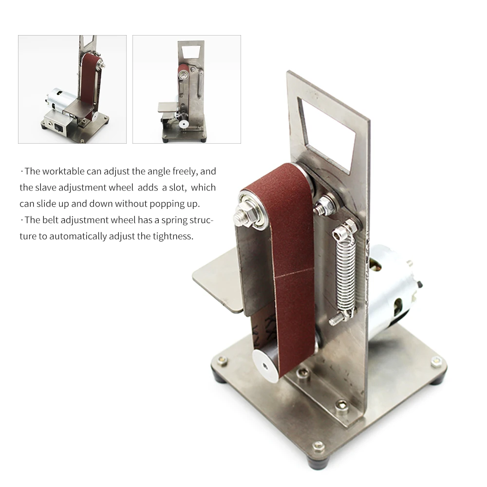 Это многофункциональный ленточный шлифовальный станок, мини портативный, низкий уровень шума, может использоваться для высокоскоростного стального сверла грубого шлифования, кромки лезвия, тонкого шлифования вольфрамовой стали токарного инструмента, полировки корень дерева Бодхи и т. Д., простой в установке и эксплуатации, это домашний инструмент DIY.