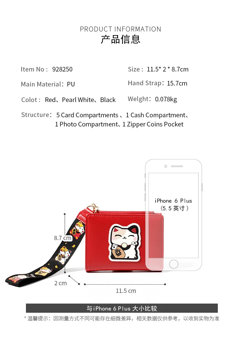 Внутренняя часть: 5 * держатель для карт, 1 * держатель для фотографий, 1 * карман для монет на молнии, 1 * отделение для банкнот