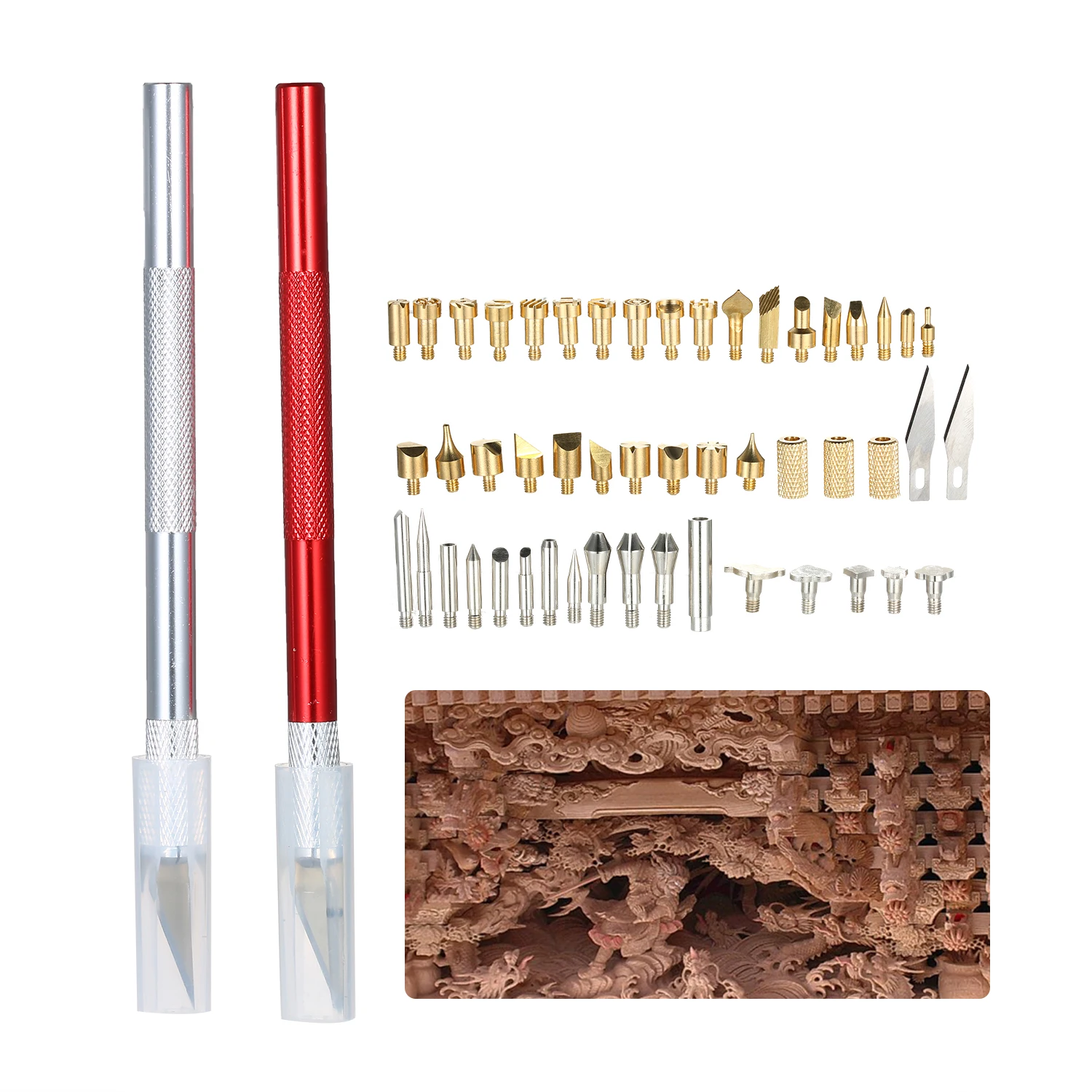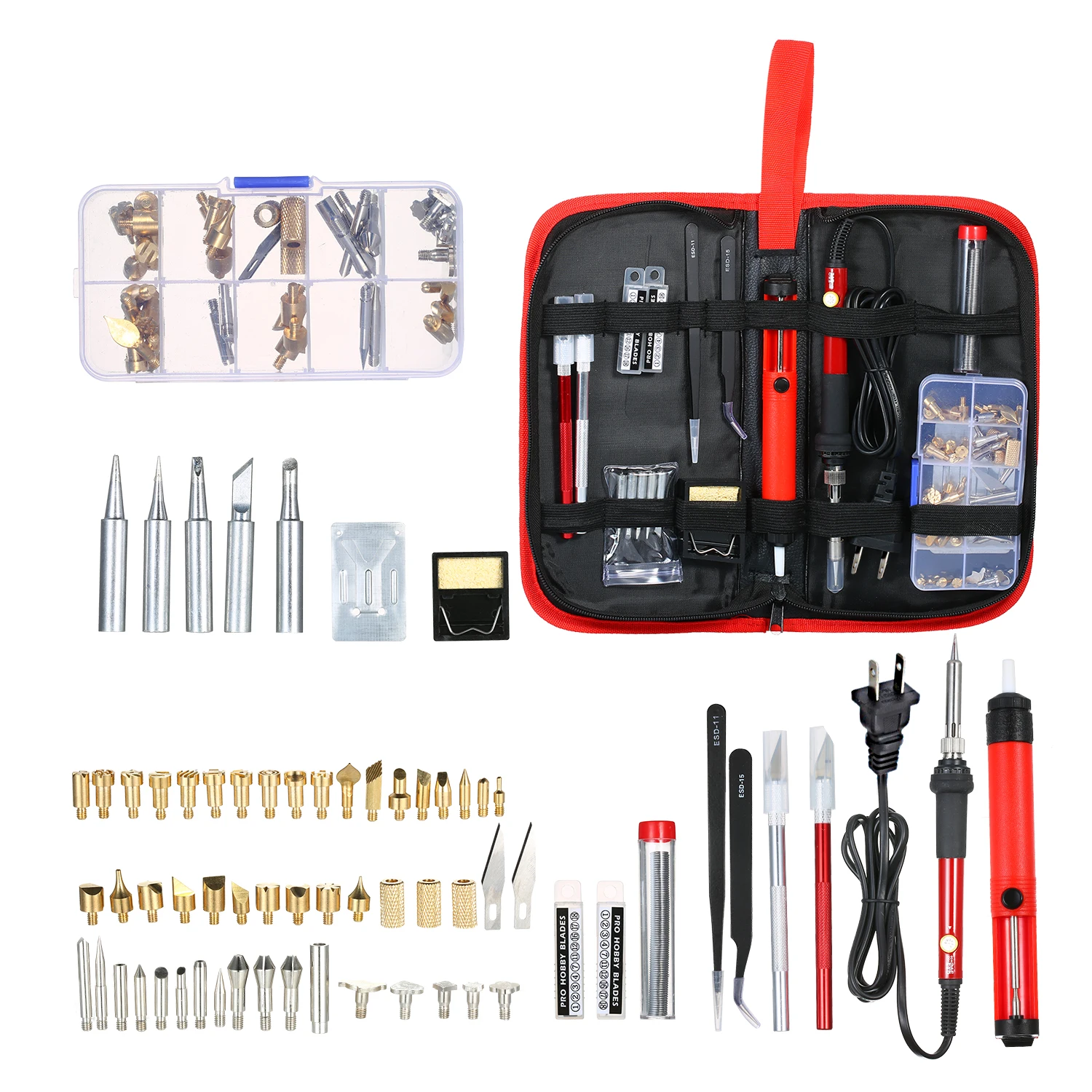 50 * Набор ручек для сжигания дерева (28 шт. резные наконечники, 5 шт. штампы для тиснения, 9 шт. наконечники для сжигания дерева, 3 шт. патрон, 2 шт. Горячий Нож, 1 шт. разъем, 1 шт. ящик для инструментов, 1 шт. подставка для пайки)