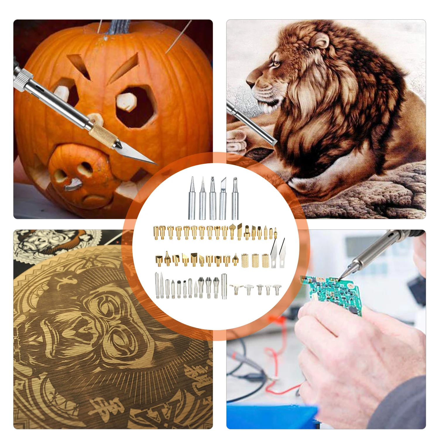 50 в 1 Набор ручек для сжигания дерева: отборные высококачественные штампы для тиснения (5 шт.), наконечники для сжигания дерева (9 шт.), наконечники для резьбы (28 шт.), наконечники для пайки (5 шт.) И горячий нож (2 шт.), патрон (3 шт.), соединитель и ящик для инструментов для удовлетворения ваших потребностей и долговечности для долгосрочного использования.