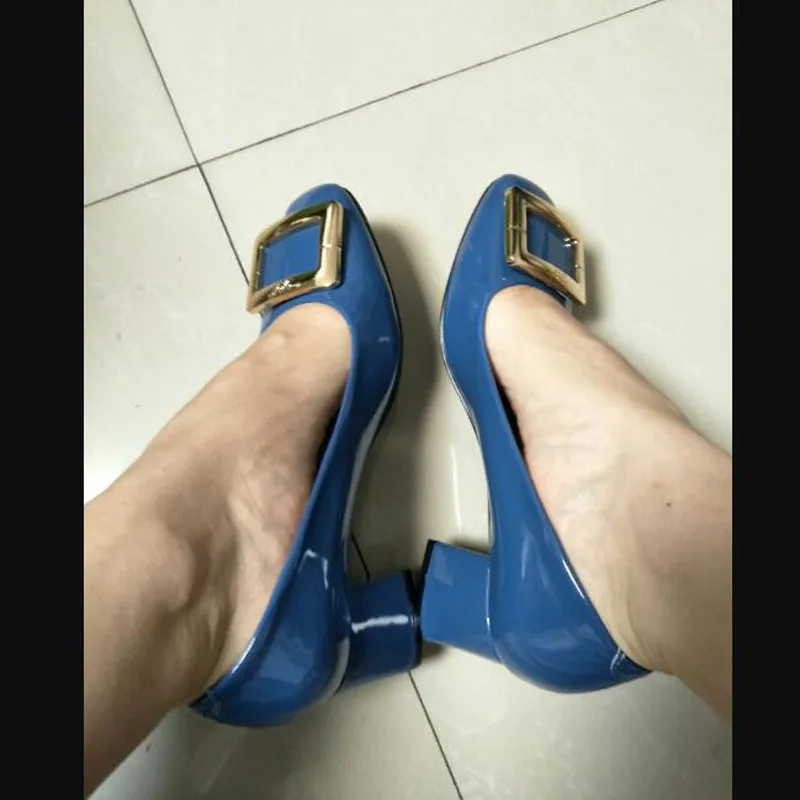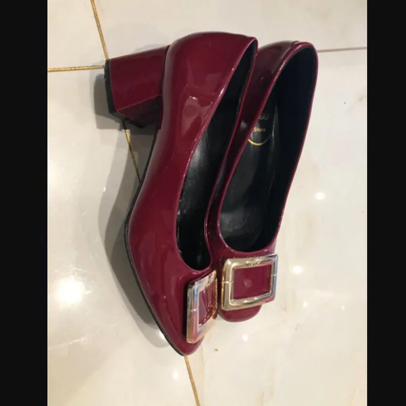 (34-40) Новинка 2020 г. Модные женские туфли-лодочки с металлической квадратной пряжкой туфли на высоком каблуке 5 см пикантные женские вечерние туфли с квадратным носком HS-168