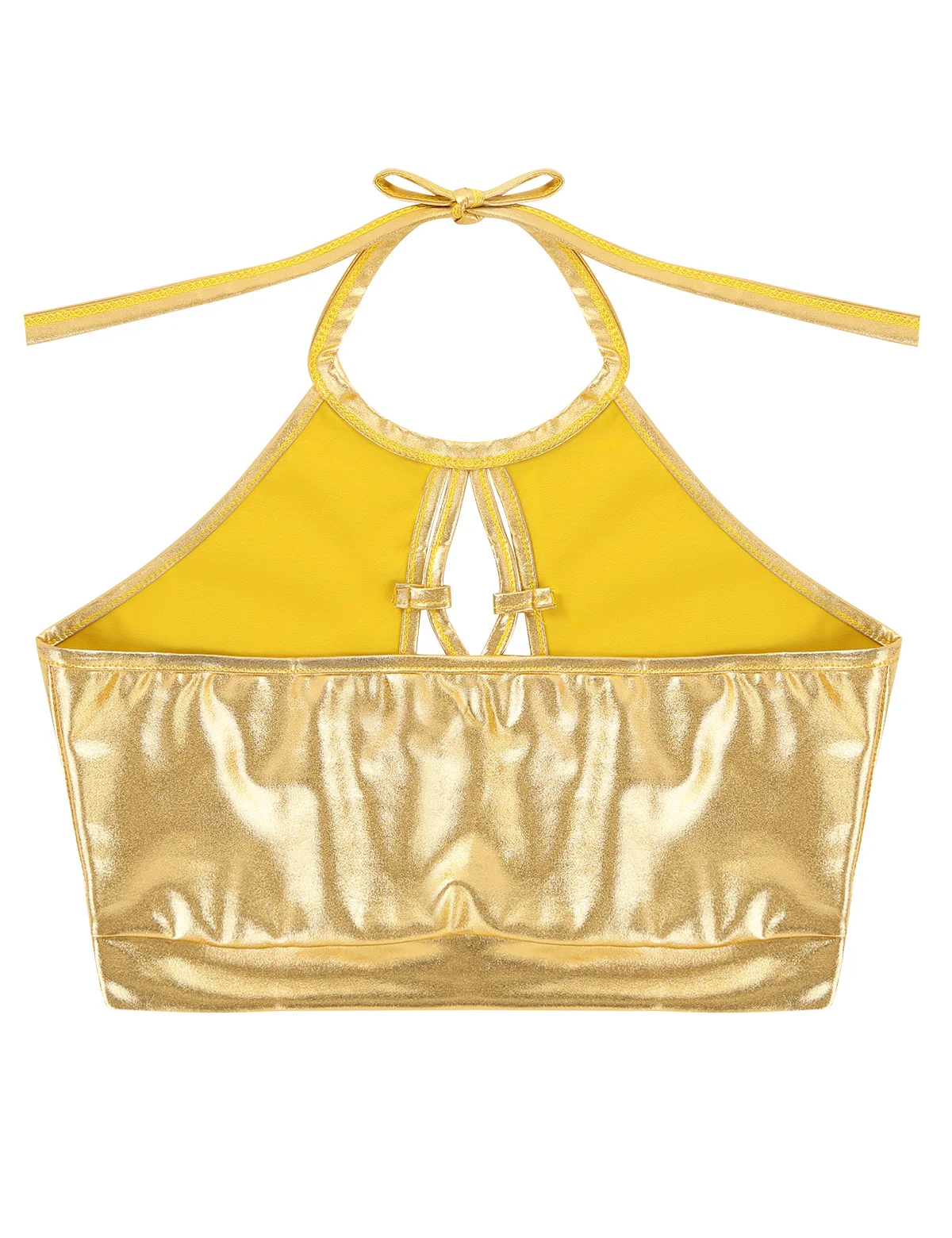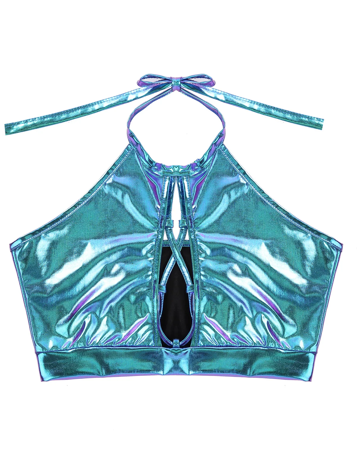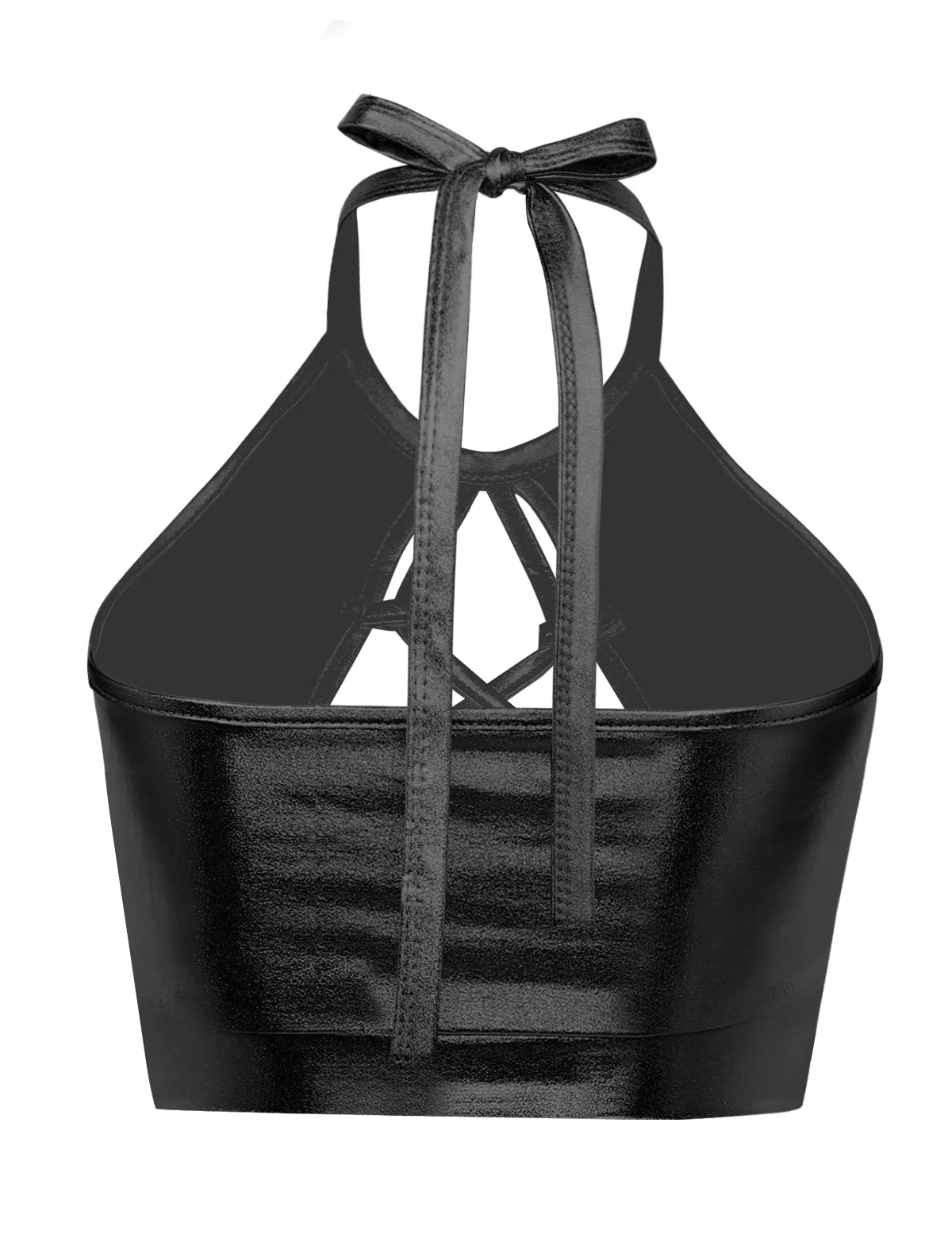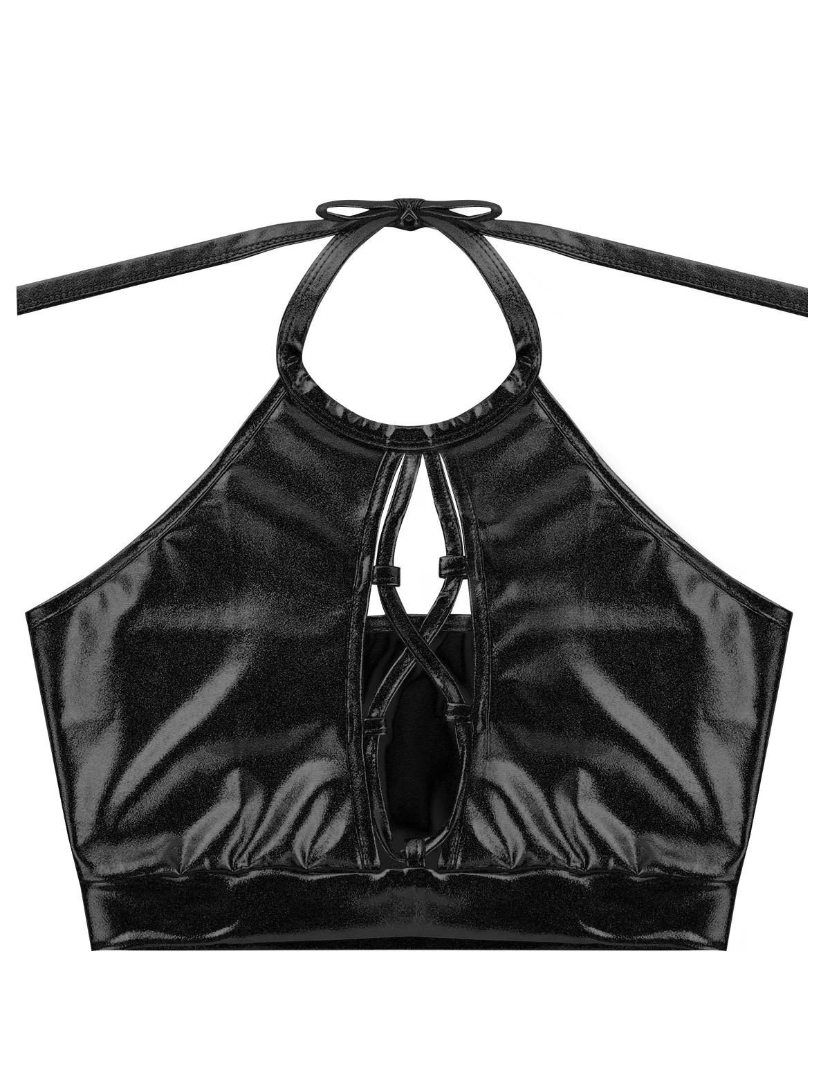 Женский wetlook металлический жилет на бретельках, укороченный топ на бретельках, блузка, застежка на застежке.