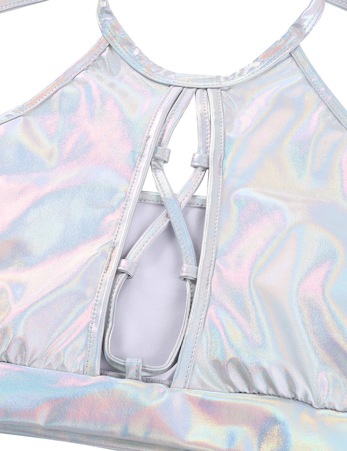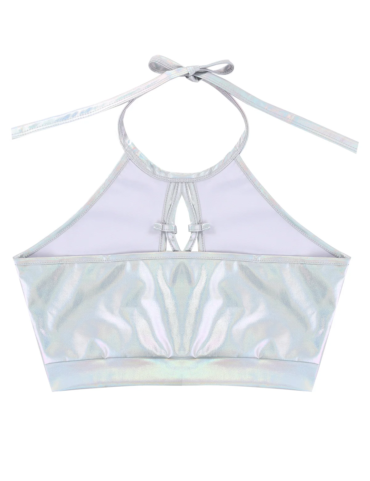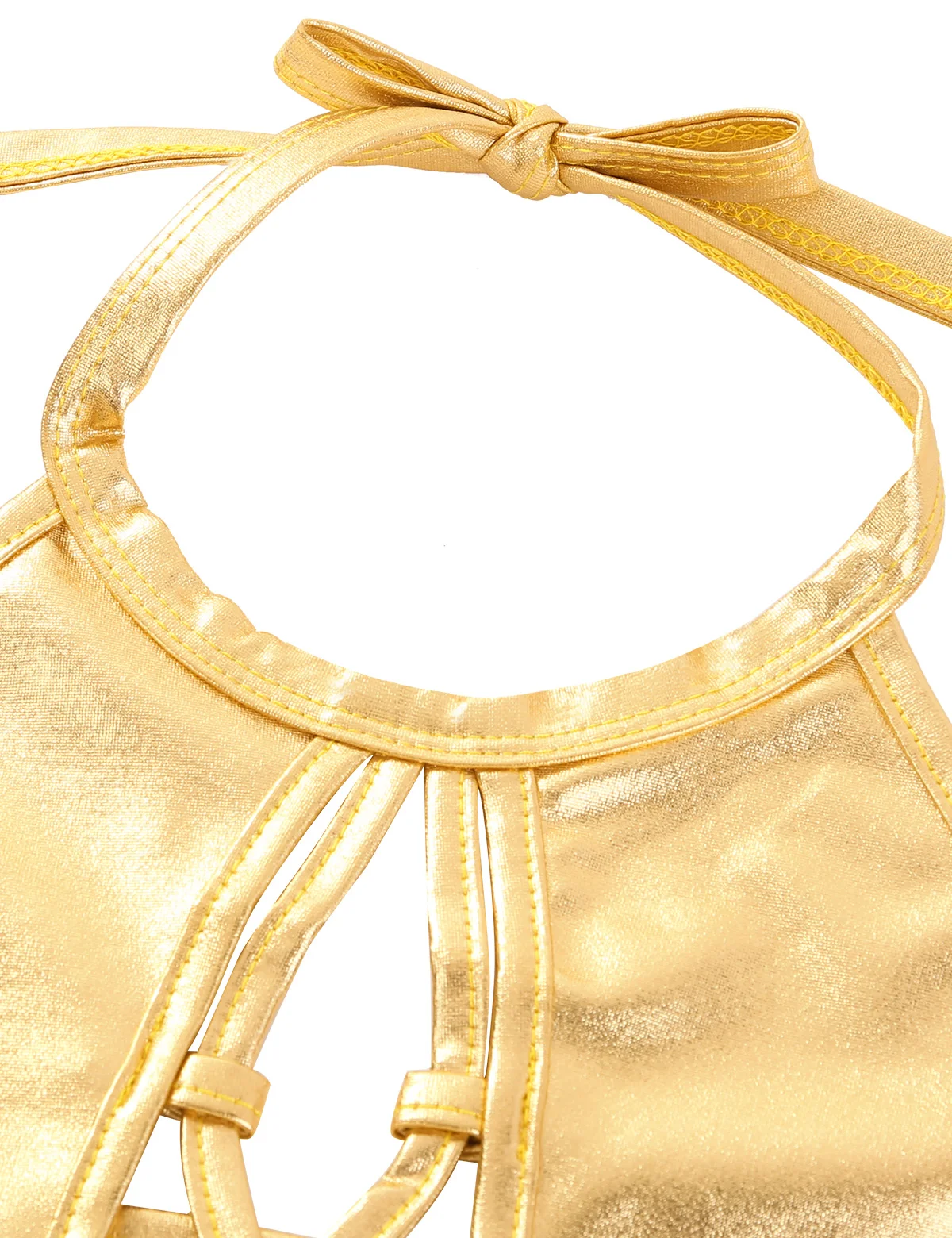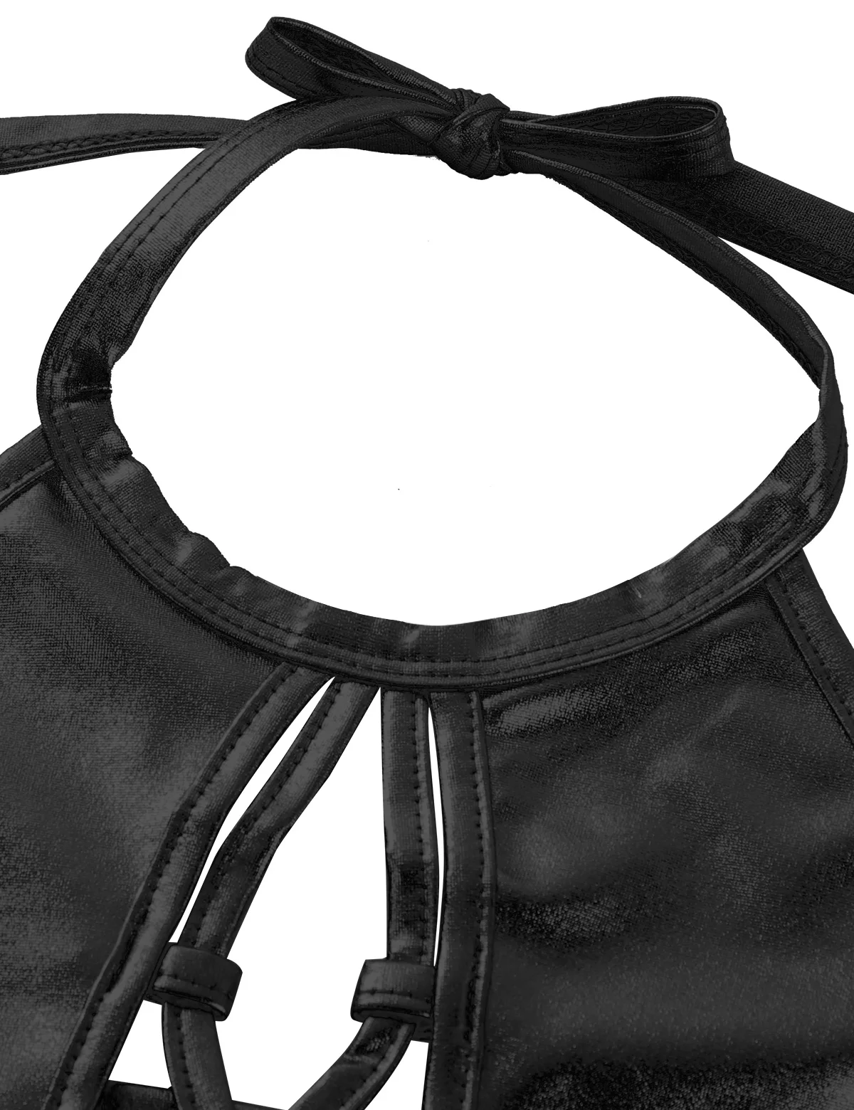 Женский wetlook металлический жилет на бретельках, укороченный топ на бретельках, блузка, застежка на застежке.