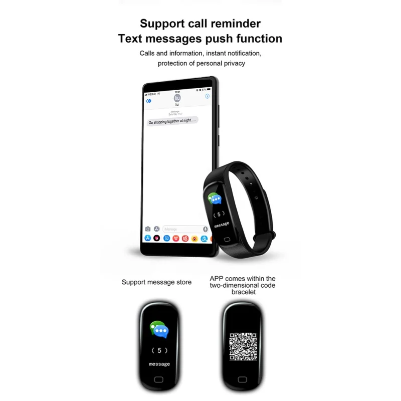 * More functions: Step count, mileage, calories, sleep monitoring, sedentary reminder, cell phone search, WeChat movement, healthy one-click detection