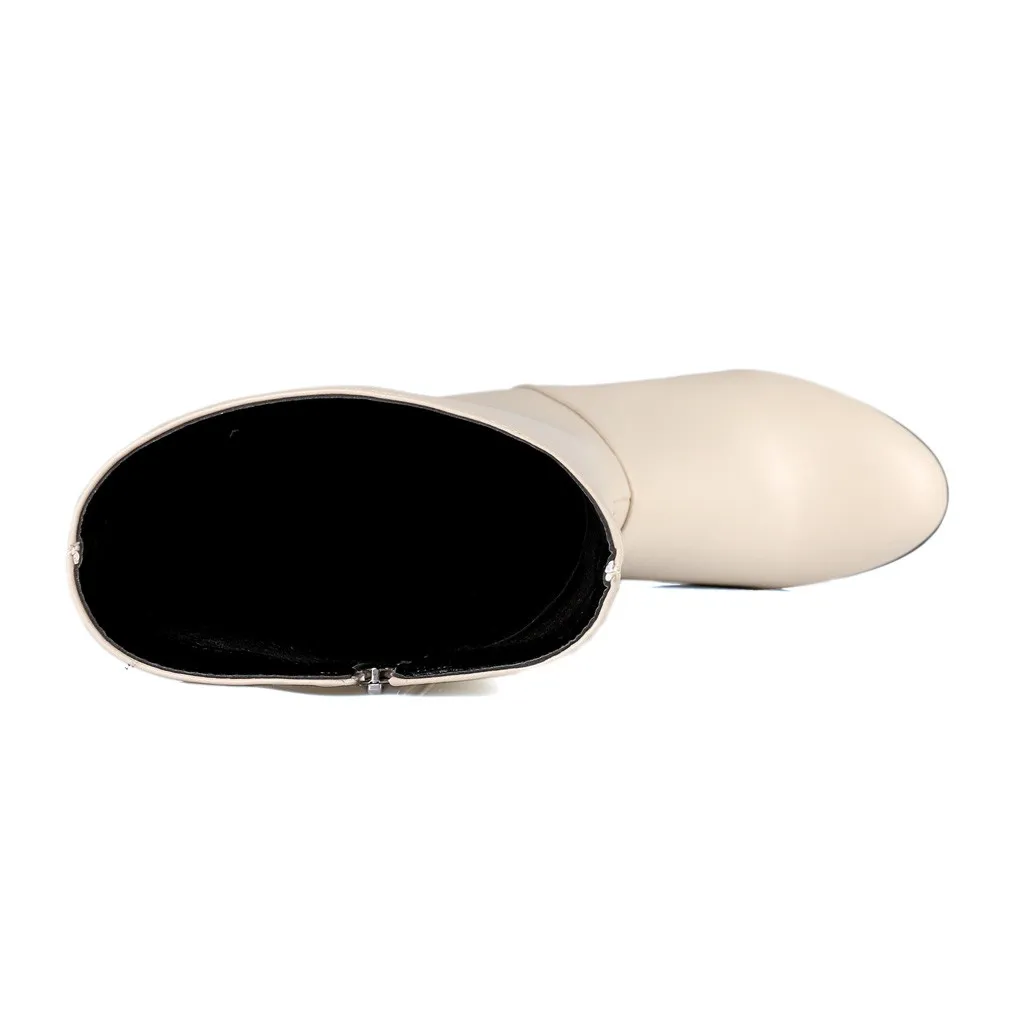 Женские зимние теплые сапоги; сапоги до колена с боковой молнией и круглым носком на высоком квадратном каблуке