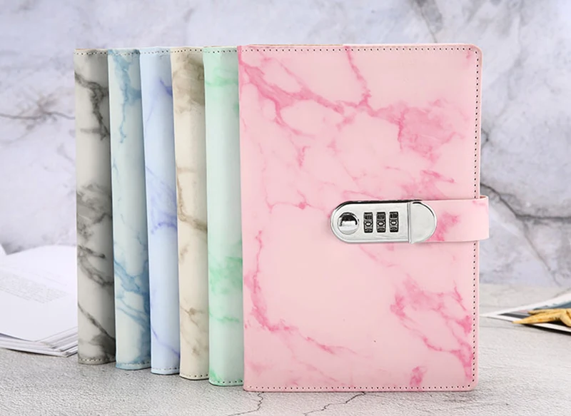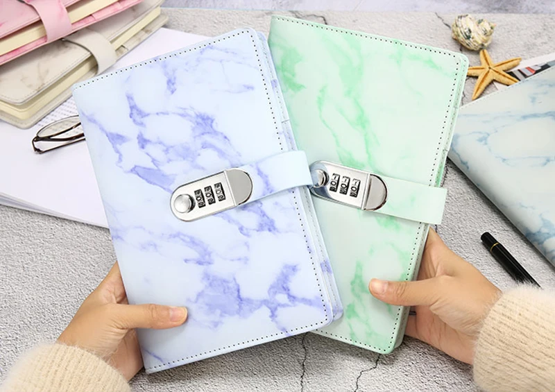 Блокнот с паролем, Мраморная текстура, блокнот для путешествий, личный дневник с кодом блокировки, толстый блокнот, кожаные офисные школьные принадлежности, подарок