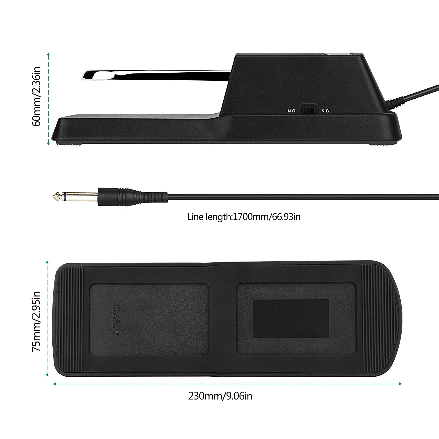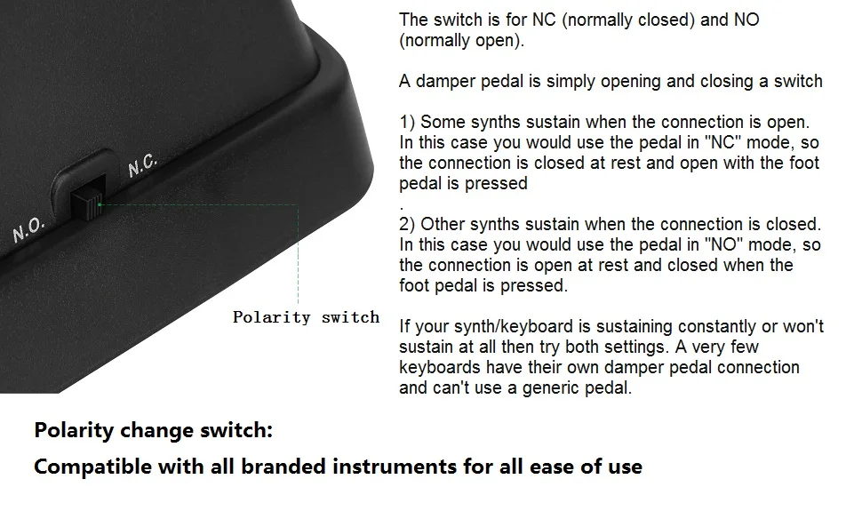 Основные характеристики: Высококачественная педаль сустейн, предназначенная для электронных клавиатур и цифровых пианино. Хромированная педаль и пластиковый корпус, прочная и долговечная. С двойным переключатель полярности для лучшего воспроизведения. 4 противоскользящие резиновые ножки в нижней части пластиковой оболочки, более устойчивые. В комплект входит кабель длиной 1,5 м/1/4 фута с разъемом ". О товаре: Цвет: черный и серебристый Материал: хромированная педаль и пластиковый корпус Длина кабеля: прибл. 1,5 м/4,9 фута Размер педали: 23*7*6 см/9,1*2,8 * 2.4in Вес педали: 278 г/9,8 унции