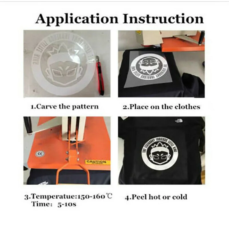 * Этот продукт должен быть использован с компьютерным режущим плоттером и теплопередающей машиной. Удобно, также можно использовать для печати по цвету. Это может увеличить богатство и вариативность продукта, и это не ограничено тканевым материалом. Стирается и не выцветает.