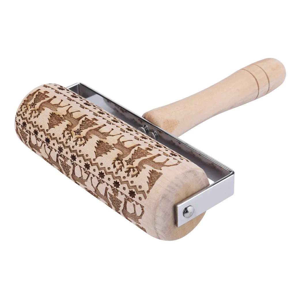 Рельефный роликовый штифт рождественские деревянные штифты для выпечки тисненые печенья