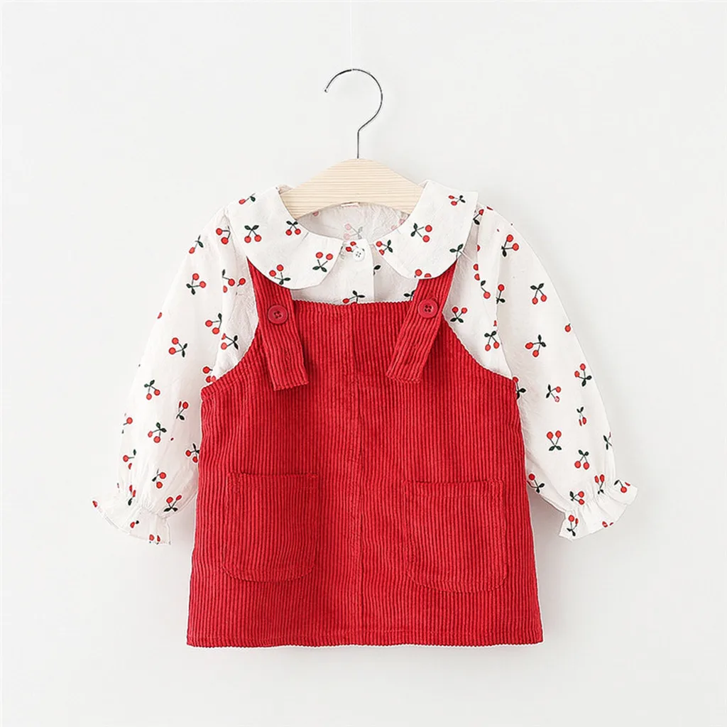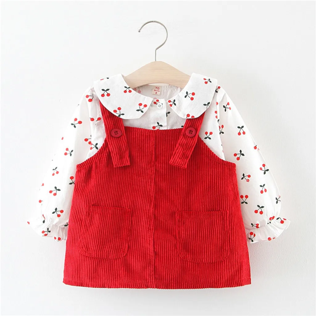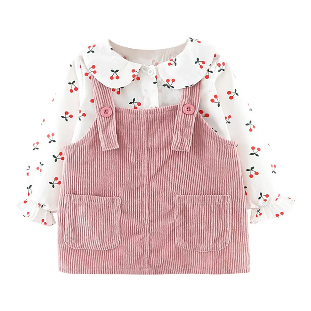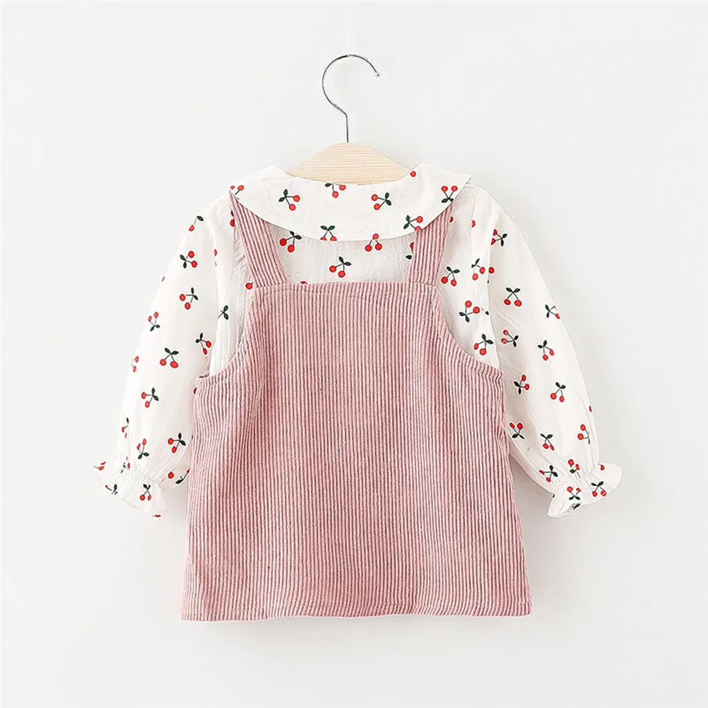Футболка с фруктовым принтом для маленьких девочек, комплект с однотонным платьем, повседневная одежда