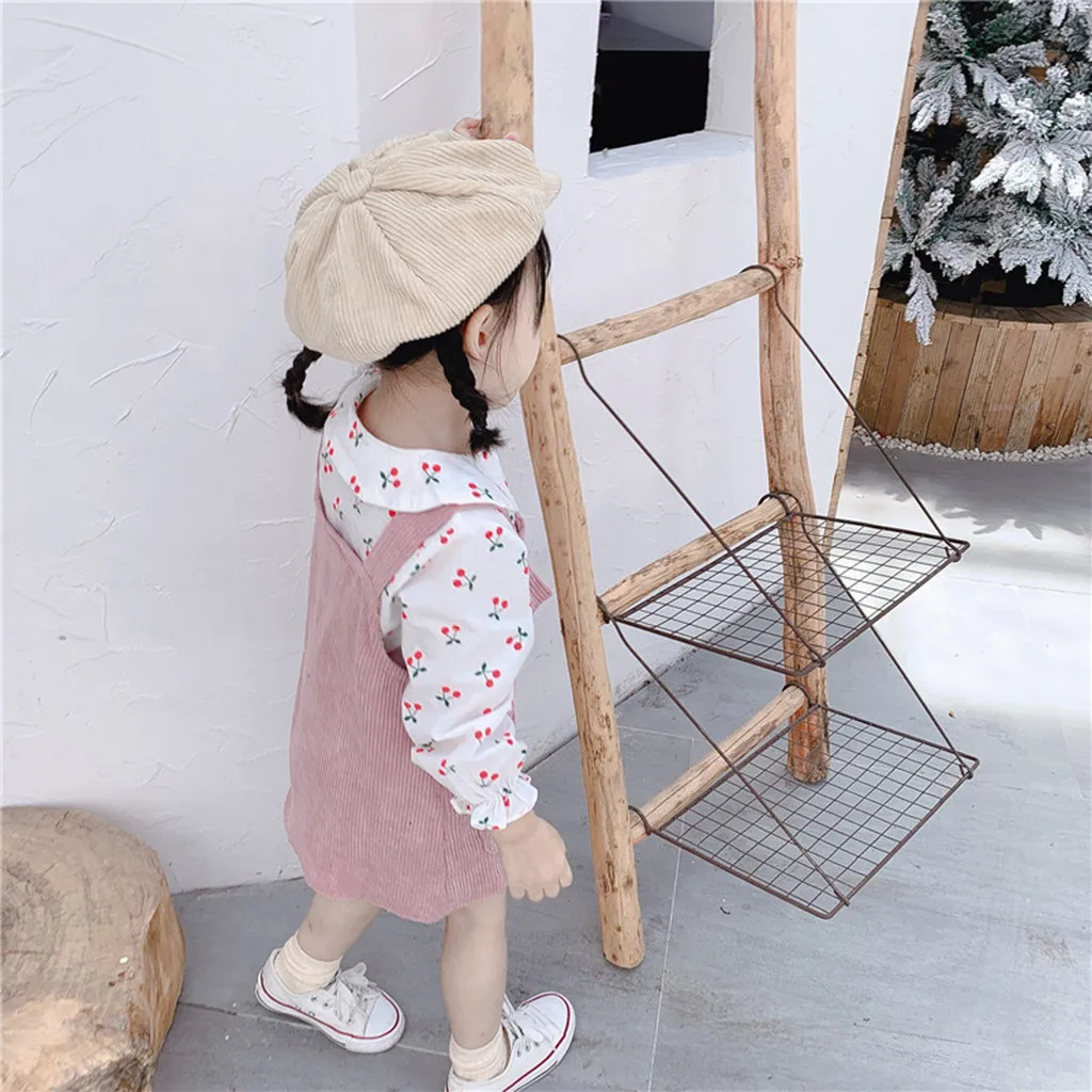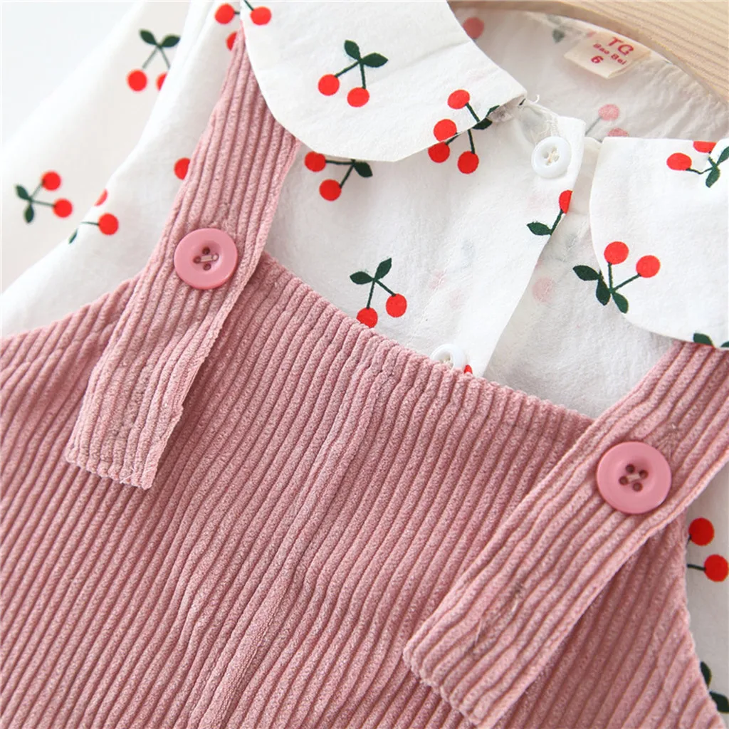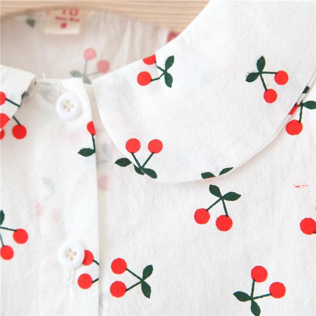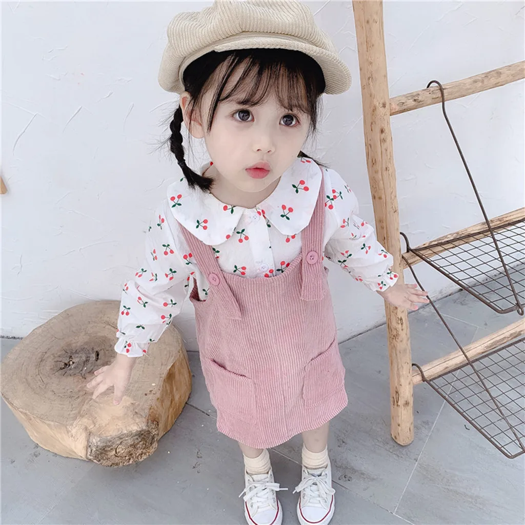 Футболка с фруктовым принтом для маленьких девочек, комплект с однотонным платьем, повседневная одежда