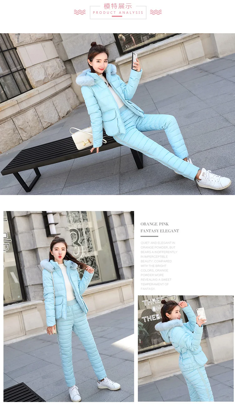 2020 зимний женский пуховик с хлопковой подкладкой + штаны, костюм для женщин, толстый теплый хлопковый пуховик, верхняя одежда, комплект из 2 предметов, спортивный костюм AQ556