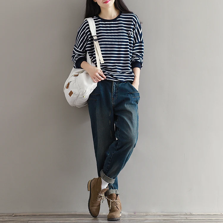 2020 зимние джинсы большого размера, женские штаны-шаровары, джинсовые штаны, Модные свободные винтажные джинсы-шаровары бойфренда AH722