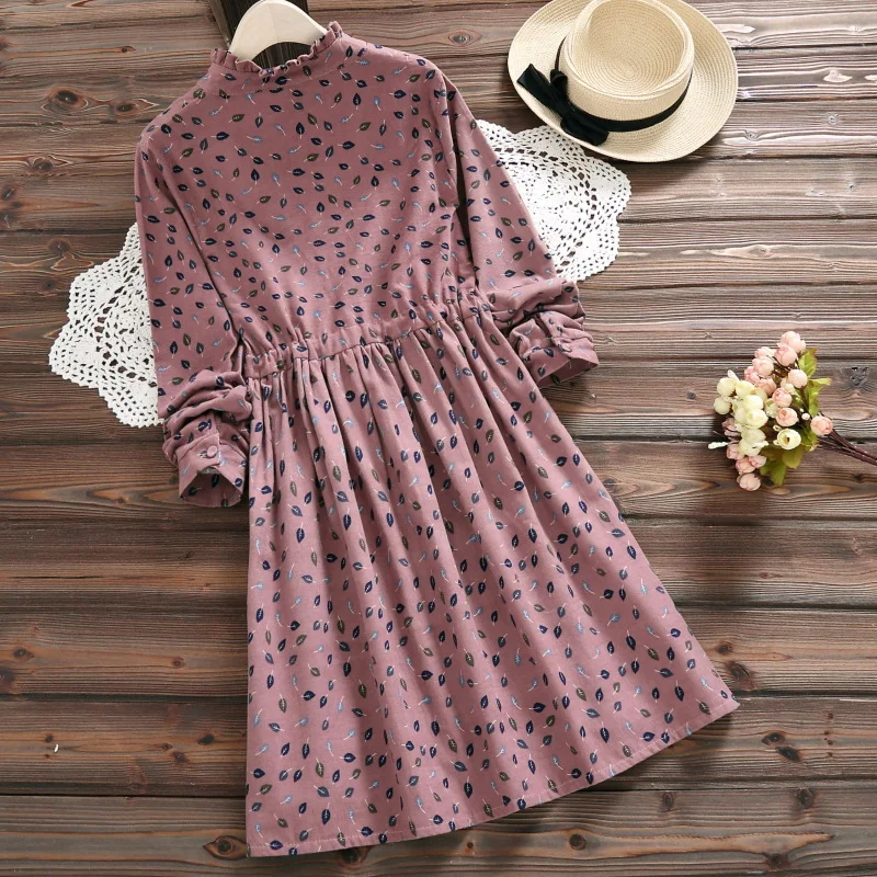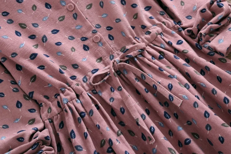 Женское платье 2020, винтажное, Vestidos, женское, Elbise, свободное, с длинным рукавом, с принтом листьев, на завязках, на талии, платья DV941