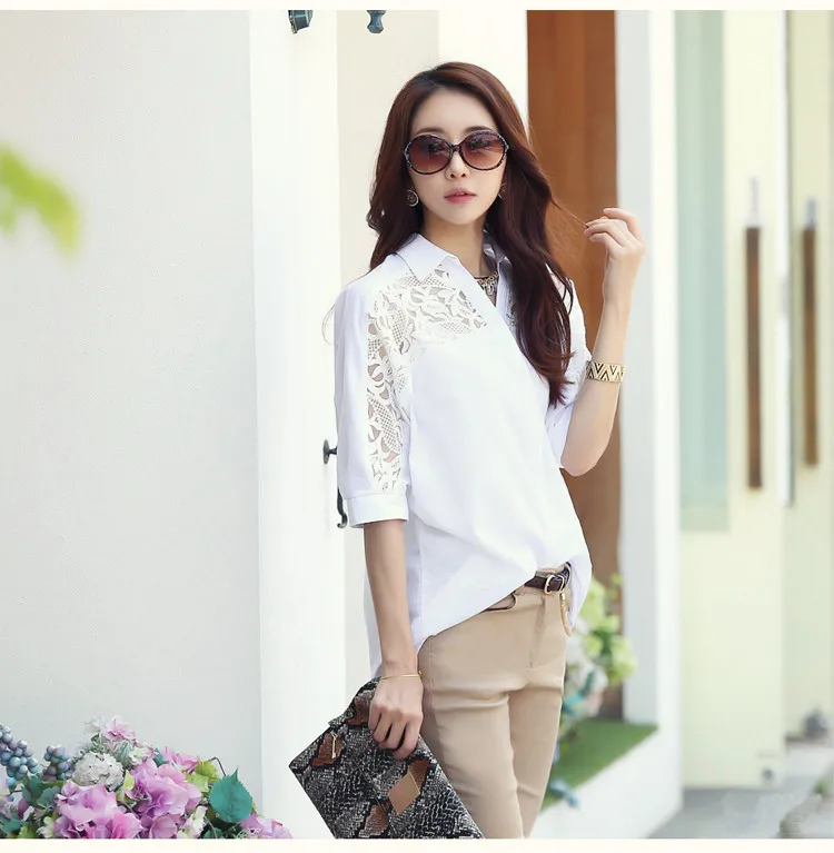 2020 Женская Повседневная Базовая летняя кружевная шифоновая блузка с вышивкой в стиле пэчворк, Модная белая рубашка WF845 <