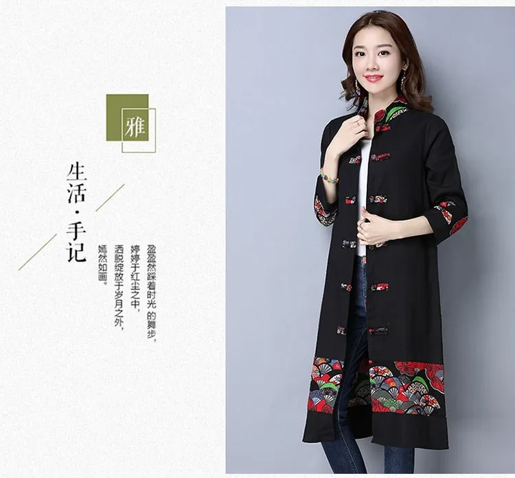 Весенне-осеннее Женское пальто из хлопка и льна с принтом, Длинные рубашки, верхняя одежда, женские блузки с длинным рукавом, Cemisas Femininas, топы, пальто DF887 <