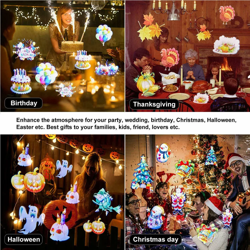 -Этот светодиодный светильник для проектора может широко использоваться в дискотеках, клубах, КТВ, пабе, баре, банкетах, свадеб, семейных вечеринках, детской комнате и т. д. отлично подходит для различных случаев, праздников и вечеринок.
