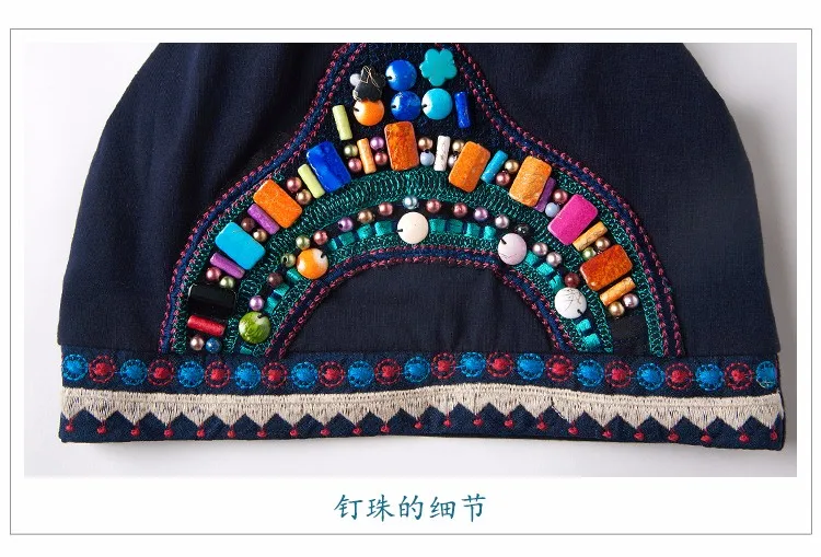Этнические skullies 2020 женские весенние осенние зимние испанские стильные хиппи винтажные темно-синие Шапки с вышивкой бисером
