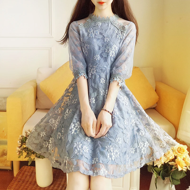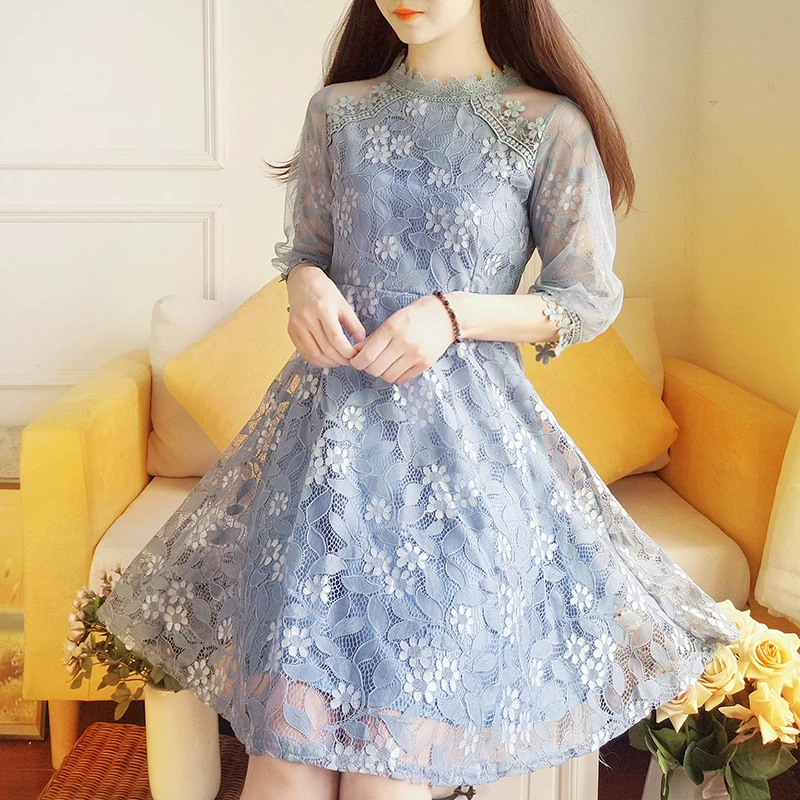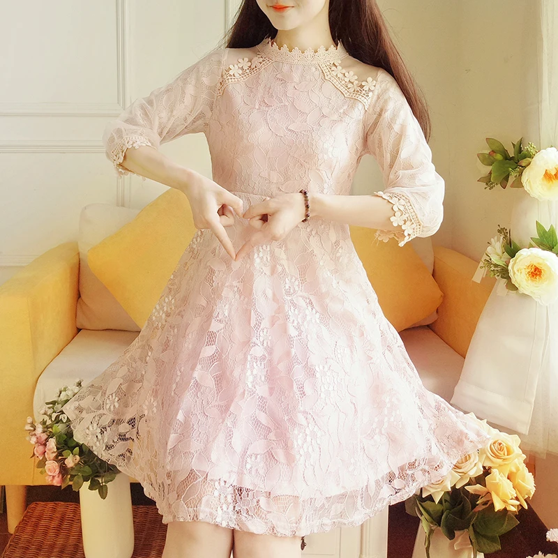 Женское элегантное милое Сетчатое платье с кружевной отделкой, Сексуальные вечерние платья принцессы, весенние платья DV96