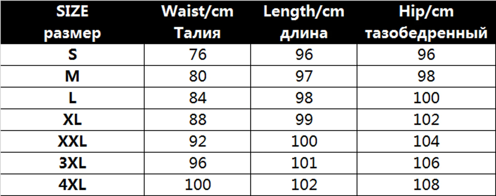 Таблица размеров