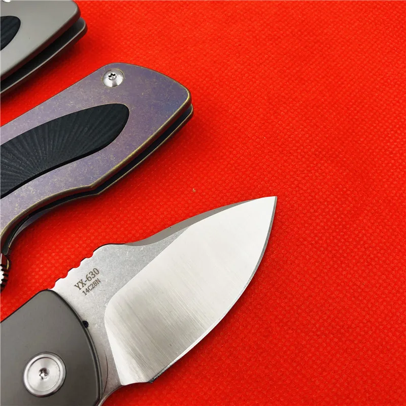 Бренд: Ion Xanadu, yx-630 Лезвие: 14c28n Ручка: титановый сплав TC4 + G10, анодированный, процесс формования, уменьшение веса. (очень приятно на ощупь, подходит для повседневного использования) Уровень защиты: hrc59-61 Общая длина: 155 мм Длина лезвия: 58 мм Толщина лезвия: 3,5 мм Ширина лезвия: 37 мм Лезвия: сатин Система открывания и закрывания: двухрядный керамический шар Посылка: Подарочная коробка + нейлоновая сумка Вес ножа: 107 г