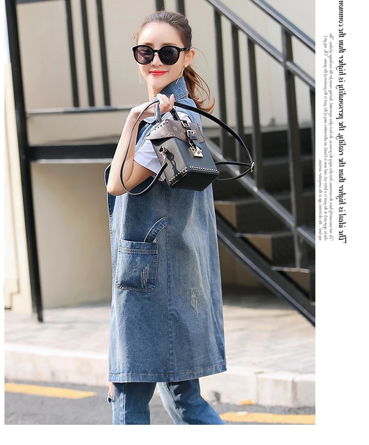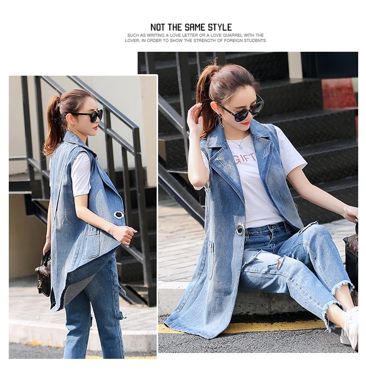 Женская Джинсовая длинная куртка без рукавов размера плюс, Colete Jeans Gilet, пальто Veste, женская одежда, Bts Casaco Feminino Weste AF618
