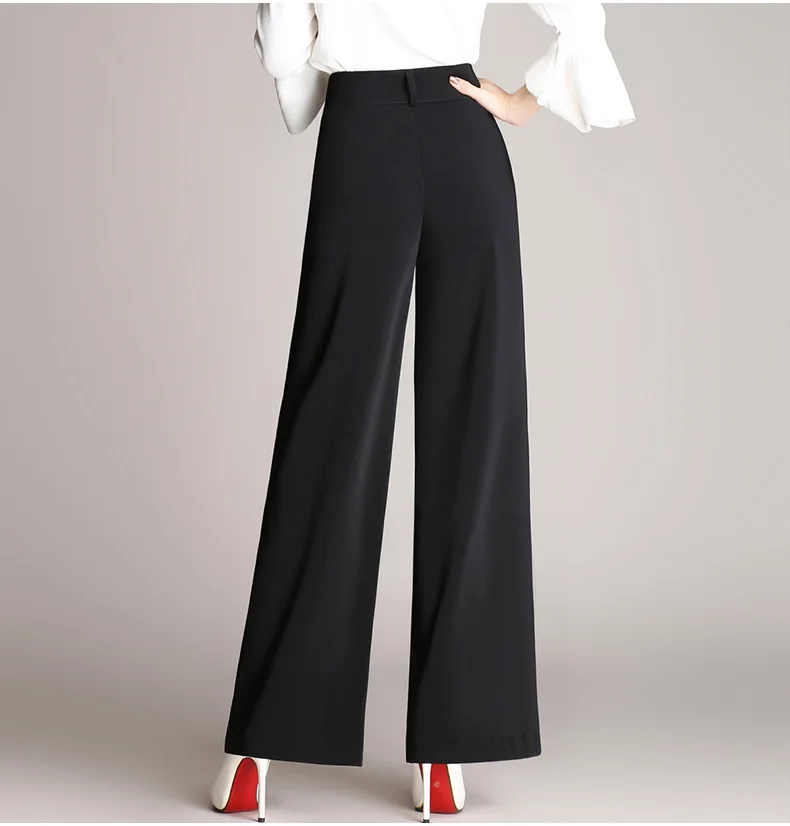 Офисная Леди брюки женские элегантные кнопки дизайн с высокой талией длинные брюки широкие ноги повседневные брюки RQ160 <
