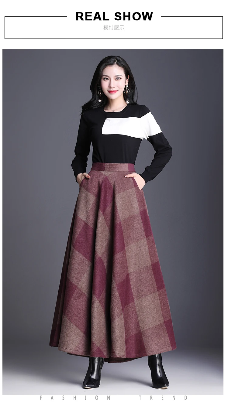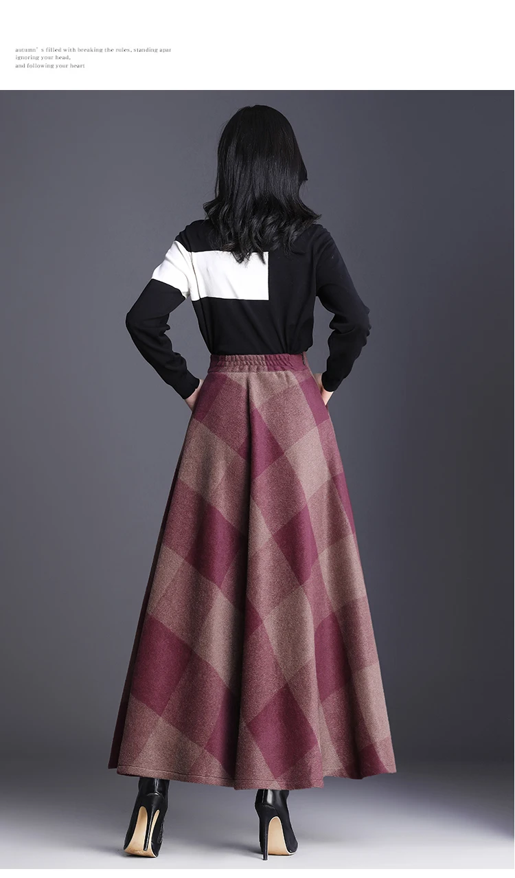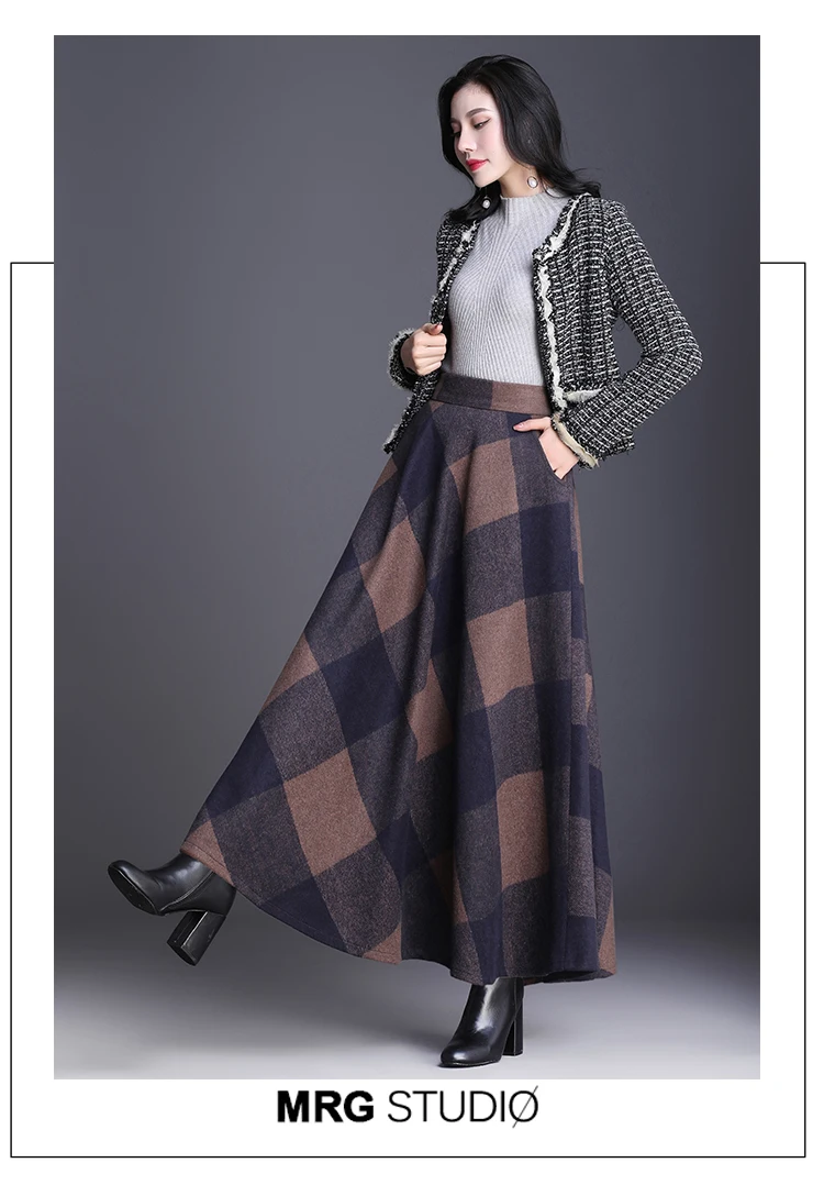 Клетчатая юбка Женская длинная трапециевидная юбка британский стиль шерстяная Макси клетчатая юбка s килт Зимняя шерстяная Шотландка Зонтик клетчатая юбка s DC286 <