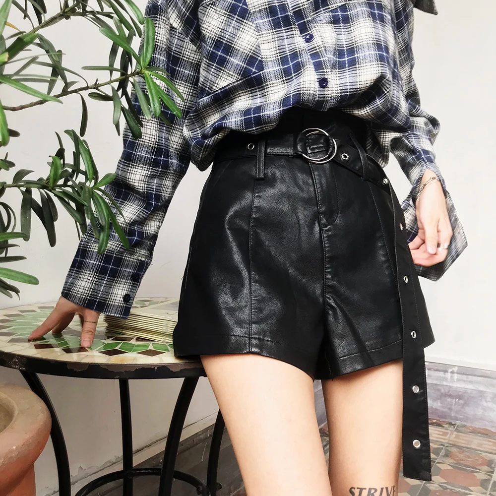 Новинка 2020, винтажные шорты, женские, новые, Осенние, с галстуком-бабочкой, высокая талия, тонкие, кожаные шорты, милые, ПУ, широкие, короткие, DC508 <