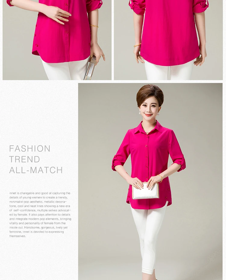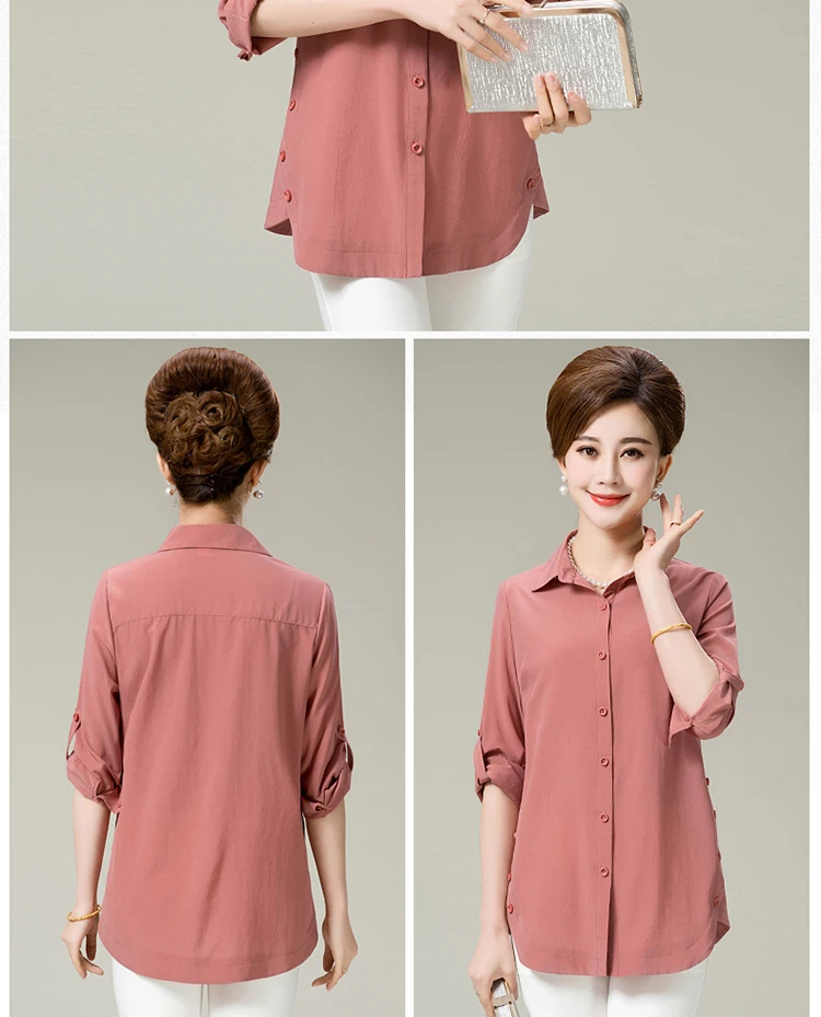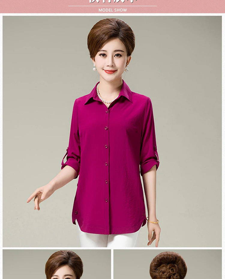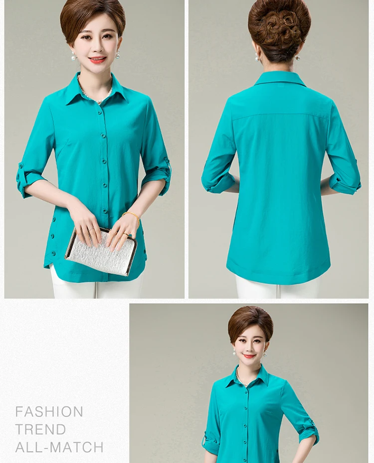 Новинка 2020, весна-осень, женские рубашки среднего возраста, чистый цвет, женские топы с рукавом на запястье, блузка свободного размера плюс, рубашка AF88