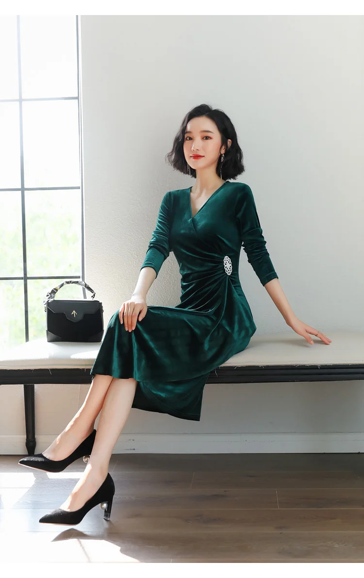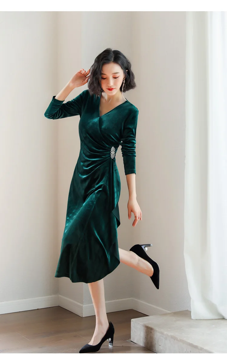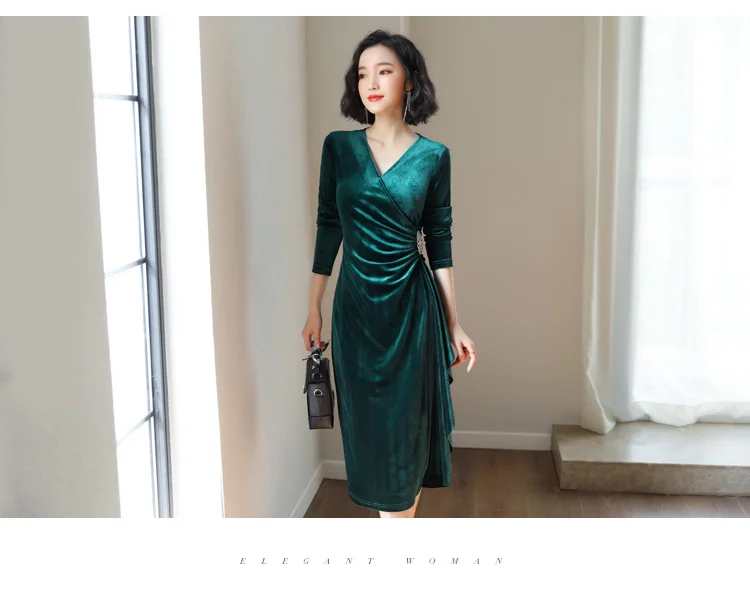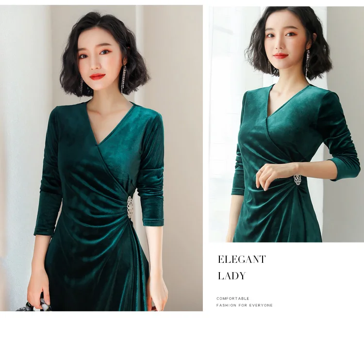 2020 осеннее зеленое бархатное платье для женщин, вечерние платья, винтажное Элегантное Платье трапециевидного силуэта, Femme vestido de festa AQ408