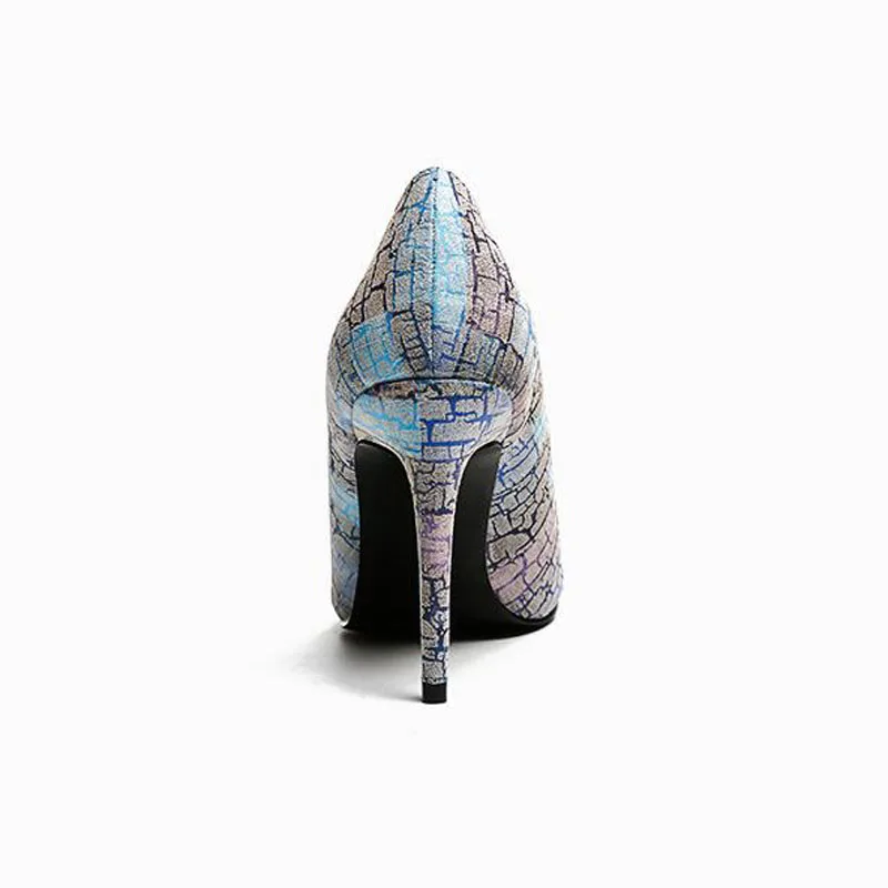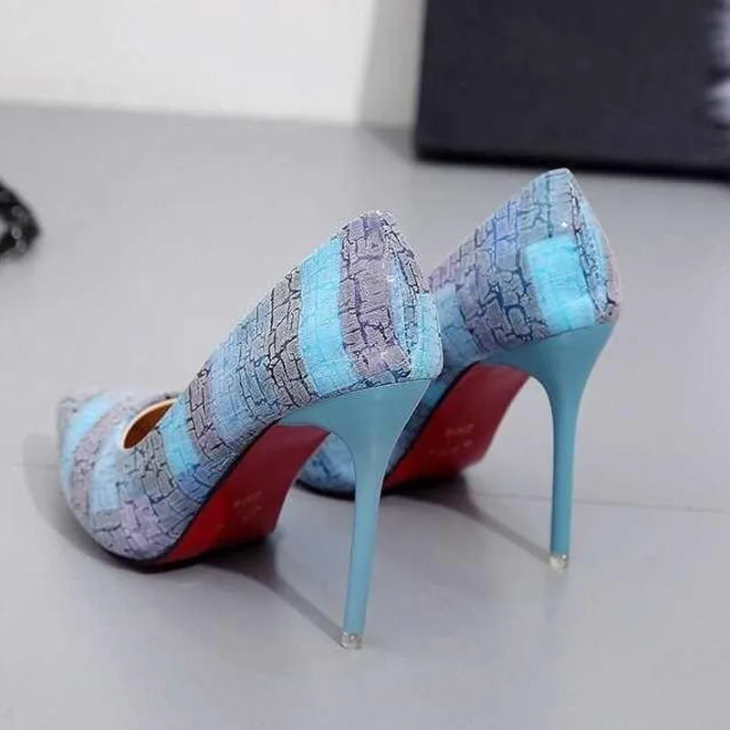 Новинка; Сезон весна-лето; Градиент цвета радуги; Туфли-лодочки с острым носком; Туфли на шпильке 9 см; Разноцветные; Цвет оранжевый, синий; Свадебные туфли; Размеры 35-40; Pt79-2