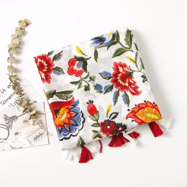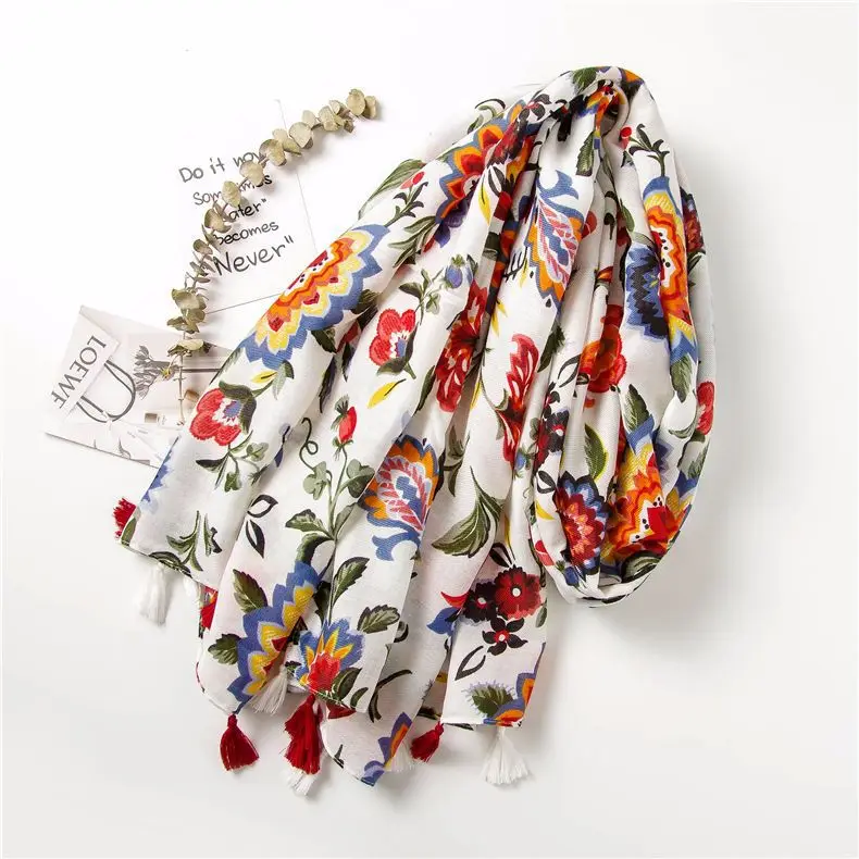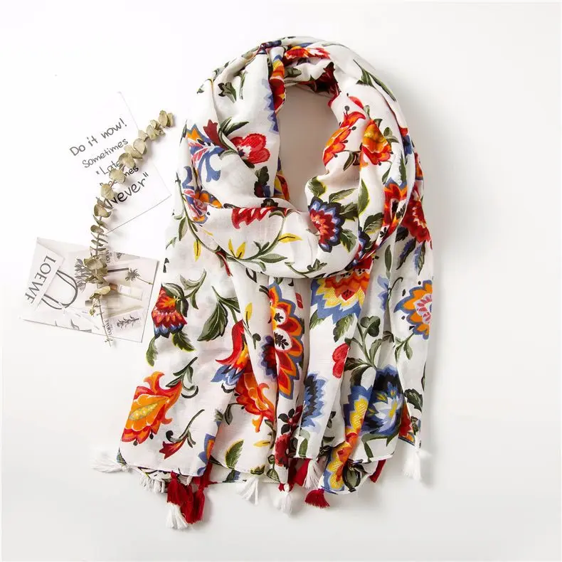 Этнический головной платок 2020 Женский Осенний весенний Испанский Стиль хиппи богемные романтические длинные шарфы с цветочным принтом DC509 <