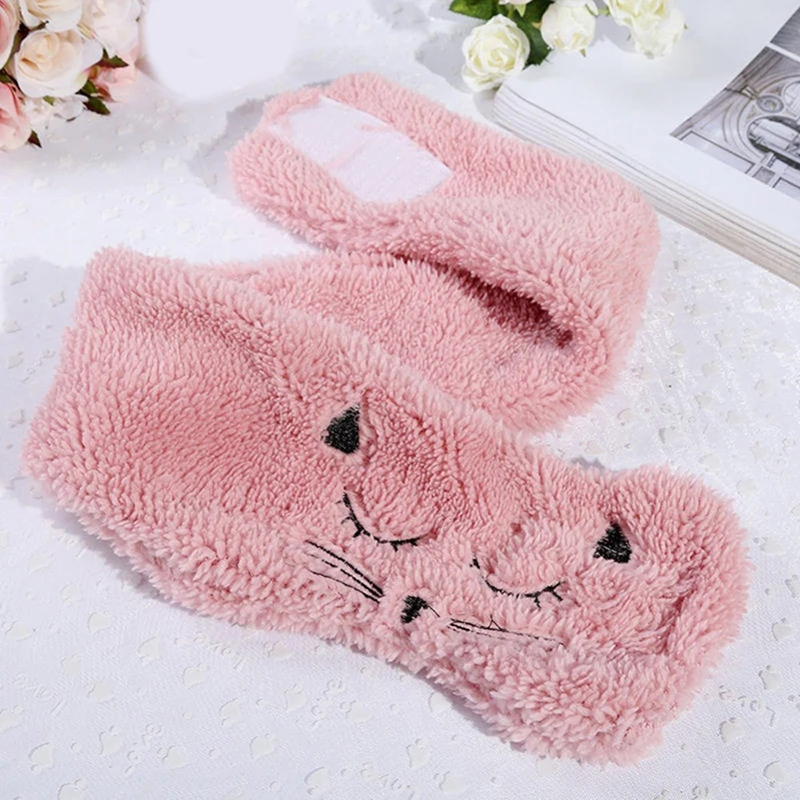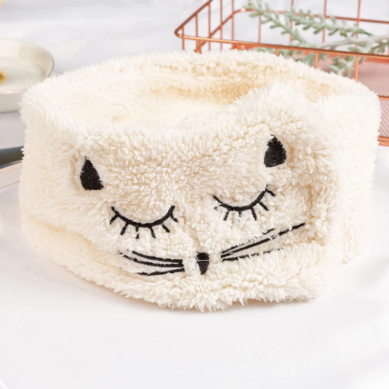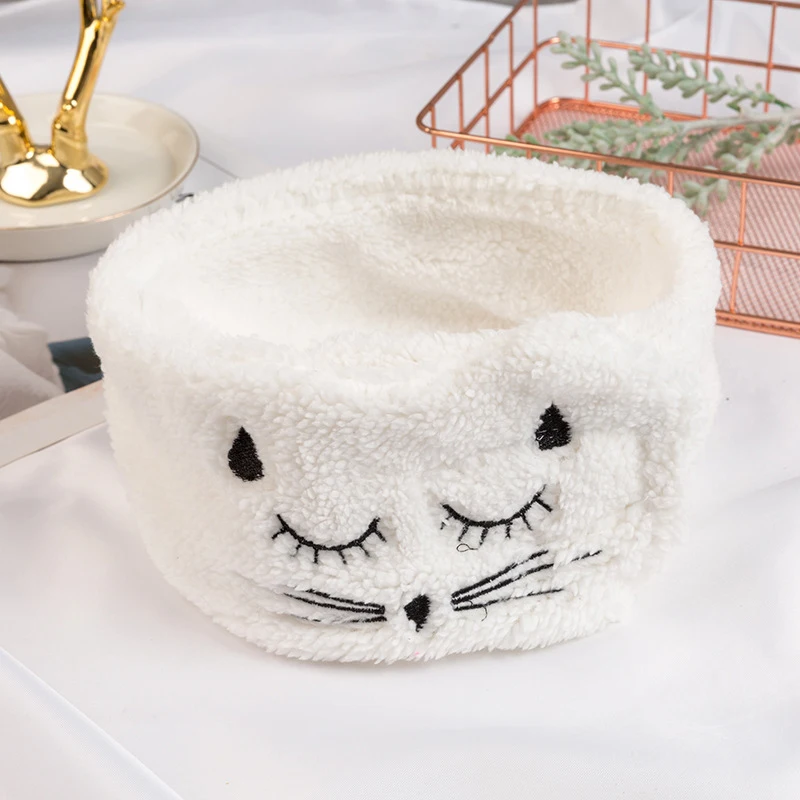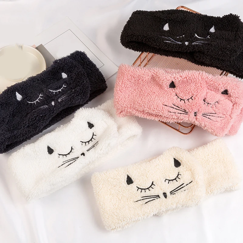 Мягкая Плюшевая эластичная широкая повязка на голову с вышивкой кота для мытья волос