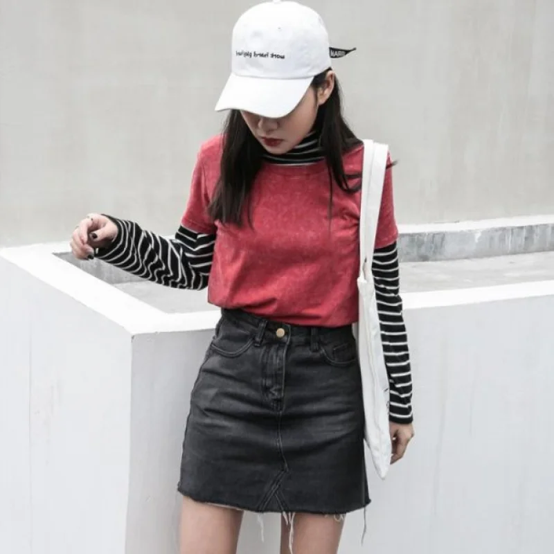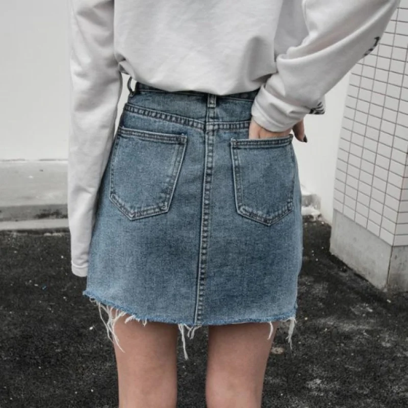 2020 Новая женская джинсовая юбка, Стильная летняя Горячая Распродажа, женские мини юбки с высокой талией, сексуальная джинсовая трапециевидная юбка DV695