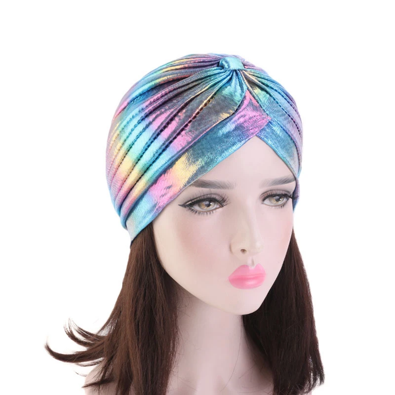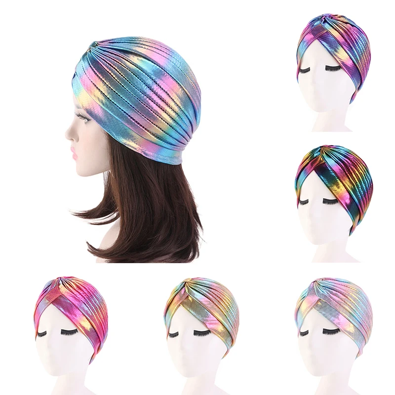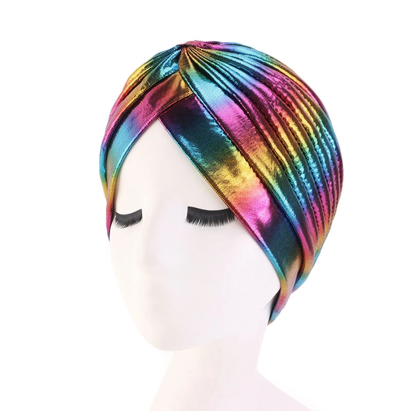 Красочные лазерные яркие тюрбан цвета металлик в индийском стиле мусульманская Кепка хиджаб головной убор