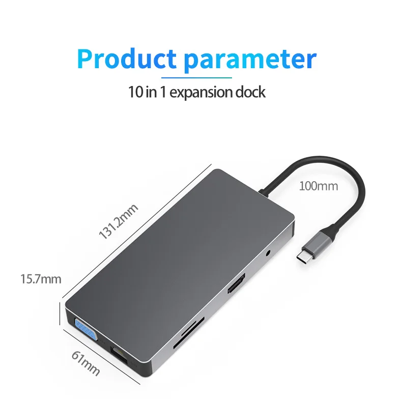Обратите внимание: Кабель HDMI, VGACable, RJ45Cable, SD/tf-карта и т. д., используются только в качестве полной функции продукта дисплея и не включены в посылка. Только usb-хаб в посылка Различные модели имеют различный интерфейс и внешний вид, пожалуйста, выберите подходящую модель перед покупкой: (1) HC101A : 10-в-1: HDMI + VGA + RJ45 + SD/TF + 3 * USB3.0 + 3,5 мм аудио + PD USB-C рот (2) HC901 : 9-в-1: HDMI + RJ45 + SD/TF + 3 * USB3.0 + 3,5 мм аудио + PD USB-C рот (3) HC701: 7-в-1: HDMI + SD/TF + 3 * USB3.0 + PD USB-C ртом (4) HC401-HDMI: 4-в-1: HDMI + USB3.0 + PD + VGA USB-C ртом (5) HC401-PD: 4-в-1: 3 * USB3.0 + PD USB-C рот (6) HC501C: «5 в 1»: 3 * USB3.0 + SD/TF USB-C ртом (7) HD1201 : 12-в-1: Поддержка МТС, Мульти-сенсорный экран расхождений в настройках экрана, только в том случае, Поддержка s систем windows. 2 * HDMI + VGA + RJ45 + SD/TF + 3 * USB3.0 + USC-C(Type-C)+ 3,5 мм аудио + PD (HDMI и VGA не могут быть использованы в одно и то же время) USB-C рот 。 материал: алюминиевый сплав + акриловое стекло (8) HV501: «5 в 1»: 2 * HDMI + 1 * VGA + 1 * USB 3,0 + 1 * PD USB-C рот (9) HC401: 4-в-1: 4 * USB 3,0 USB-C рот HDMI поддерживает 4K 30HZ, VGA поддерживает 1080P,PD Зарядка: поддерживает максимум 60W. Важное примечание -При подключении к ноутбуку Не поддерживайте зарядку мобильного телефона через USB-A или USB-C женский порт из-за ограниченного тока. -Пожалуйста, предоставьте источник питания при подключении к энергоемким устройствам; Поддержка подключения только 1 HDD/SSD одновременно. -Чтобы предотвратить помехи Wi-Fi, вы можете обернуть корпус линии рядом с портом type-c фольгой или с помощью маршрутизатора частоты 5 ГГц. Кроме того, При неиспользовании отключите ethernet-кабель и PD зарядный кабель от адаптера. -Для Samsung Galaxy S10/S9/S8/Note9/8, он совместим с режимом Dex через концентратор, версия телефонной системы требует Android 9,0 или выше. -Для ноутбуков Xiaomi мы предлагаем подключение к неоригинальному адаптеру питания PD, например, к адаптеру питания Apple, Dell для обеспечения нормального использования.