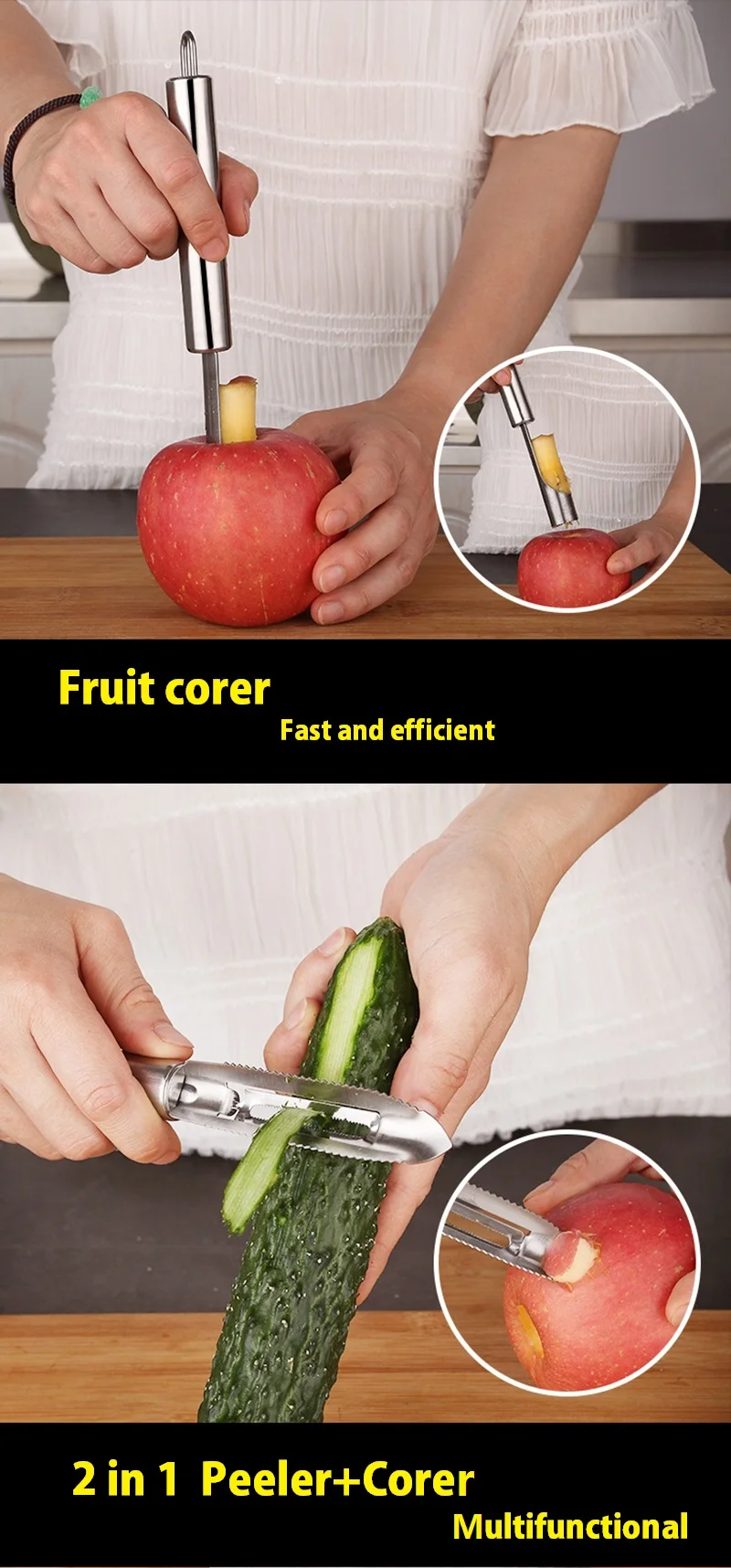 Размер изделия: как показано на рисунке Основной материал: нержавеющая сталь Преимущества продукта: 1. Высококачественный материал: 6 кухонных гаджетов изготовлены из нержавеющей стали, безопасны, здоровы и долговечны. 2. Разумный дизайн: ручка с подвесным отверстием, удобная для хранения, более практичная. 3,6 шт. на выбор: Эта ссылка включает овощечистку/волнистую фри-резку/совок для мороженого/яблочный корер/нож для резьбы по фруктам/Баллер Для дыни. 4. Легко чистить: его можно очистить водой или чистящей прокладкой.