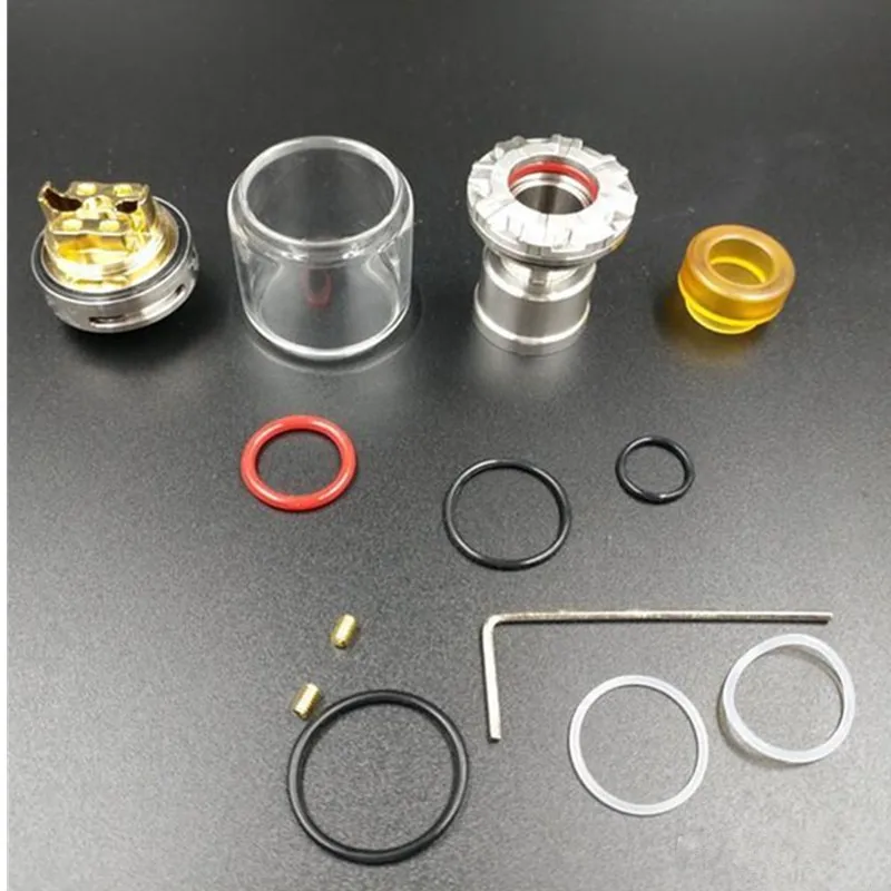 Relod rtafeatures: 24 мм Диаметр 7 мм Ёмкость Улучшенная конструкция из нержавеющей стали 304 24K позолоченная колода Топ через защищенную насадки PEEK изоляторы Четырехъядерным процессором внутренний воздушные трубки Двойной регулируемый нижний воздуха Позолоченное соединение из латуни 510 24K Цвет: черный/серебристый/золотой/Радужный Вес: 100 г